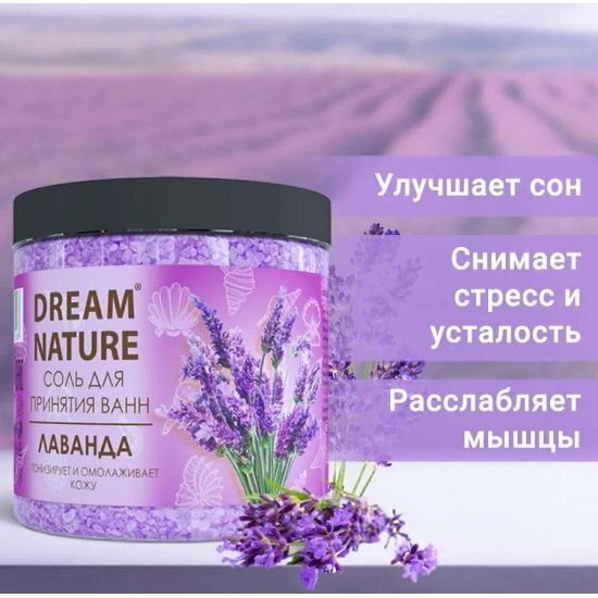 Соль для ванн Dream Nature Природная "Лаванда", цветная, 650 г интересное: