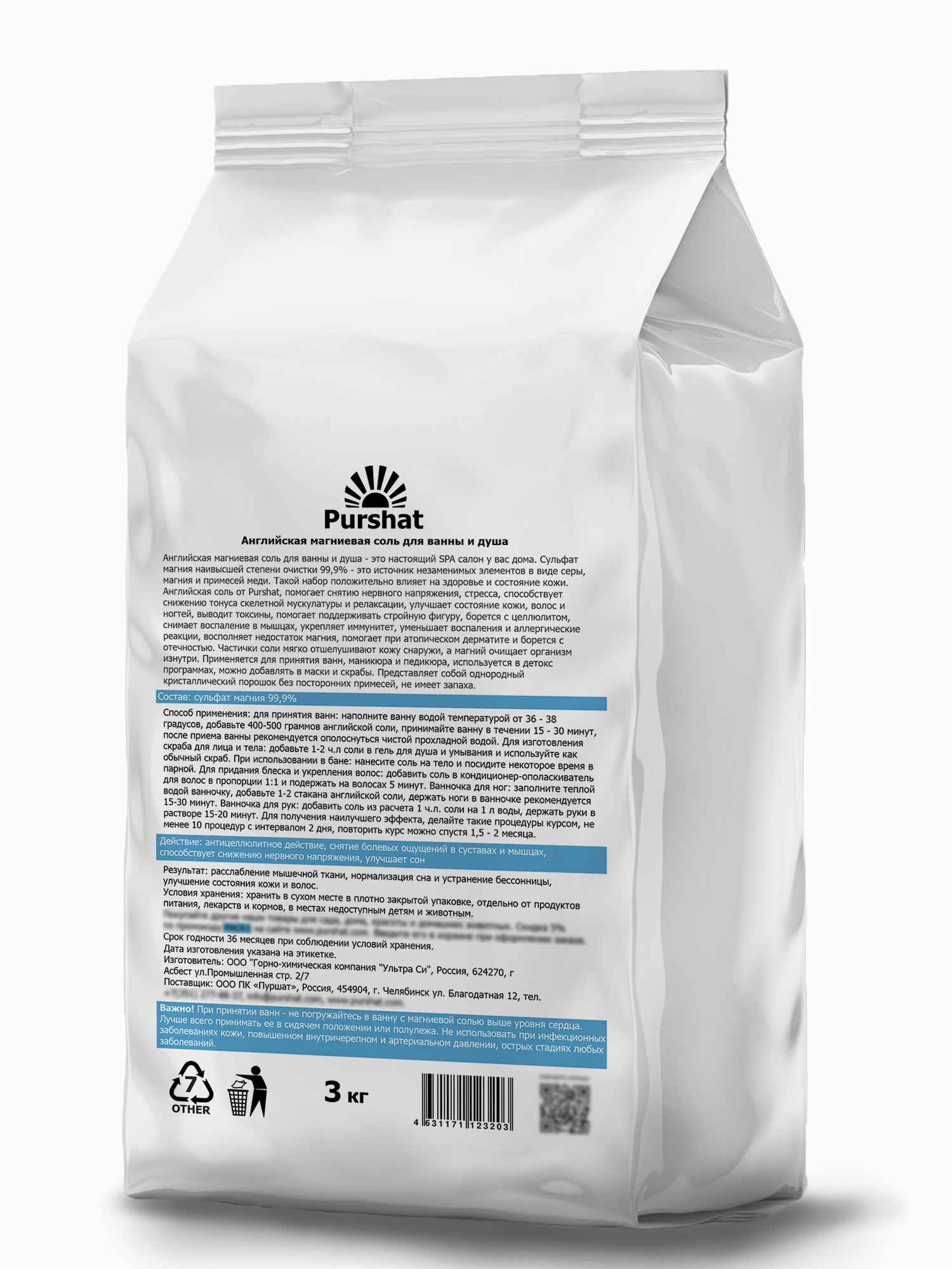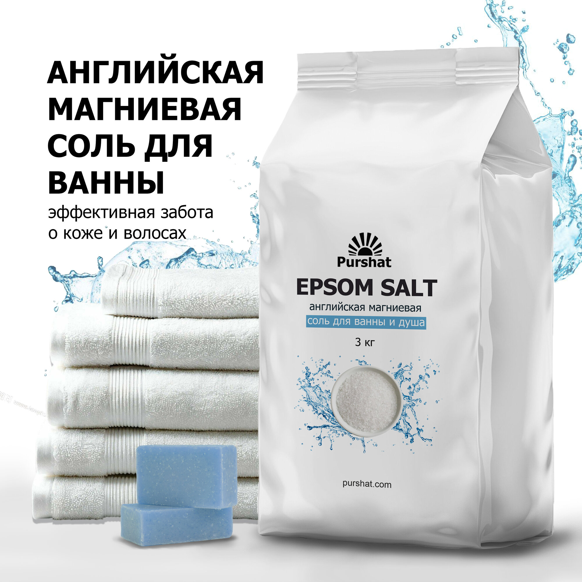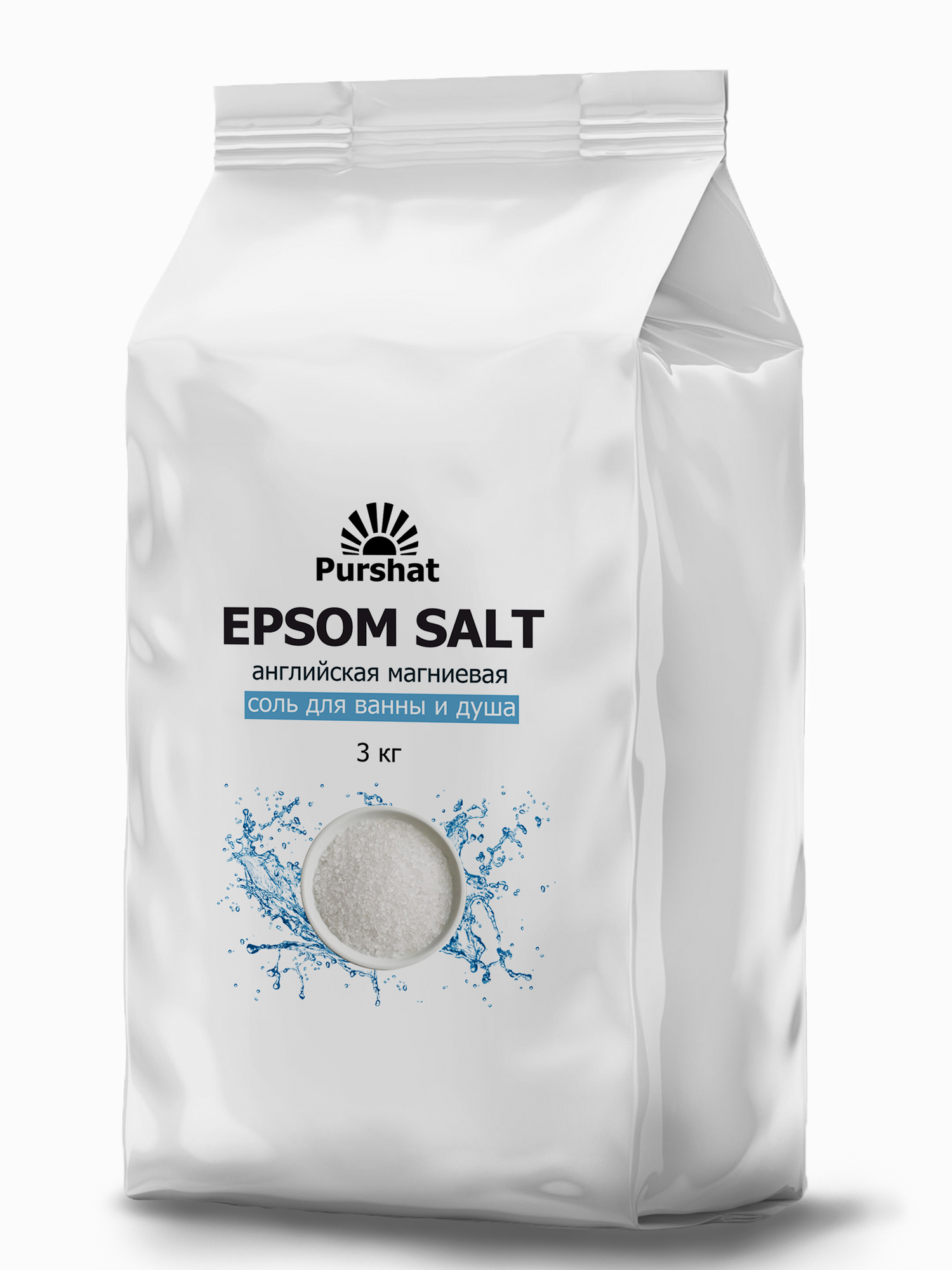 Английская магниевая соль для ванны и душа Epsom Purshat 3 кг - натуральный SPA-комплекс для здоровья интересное: