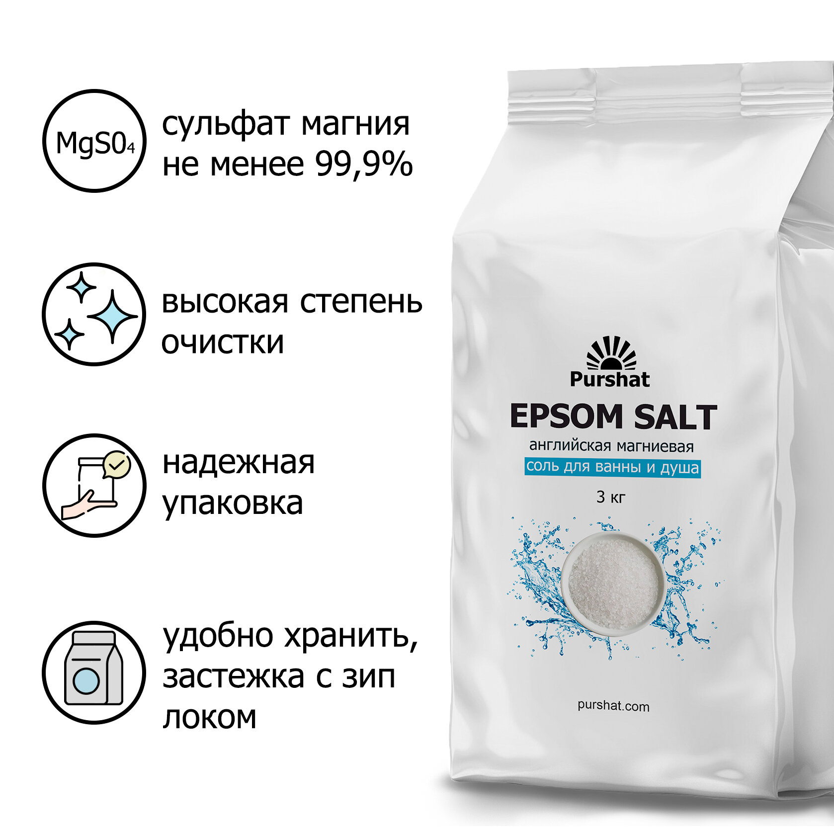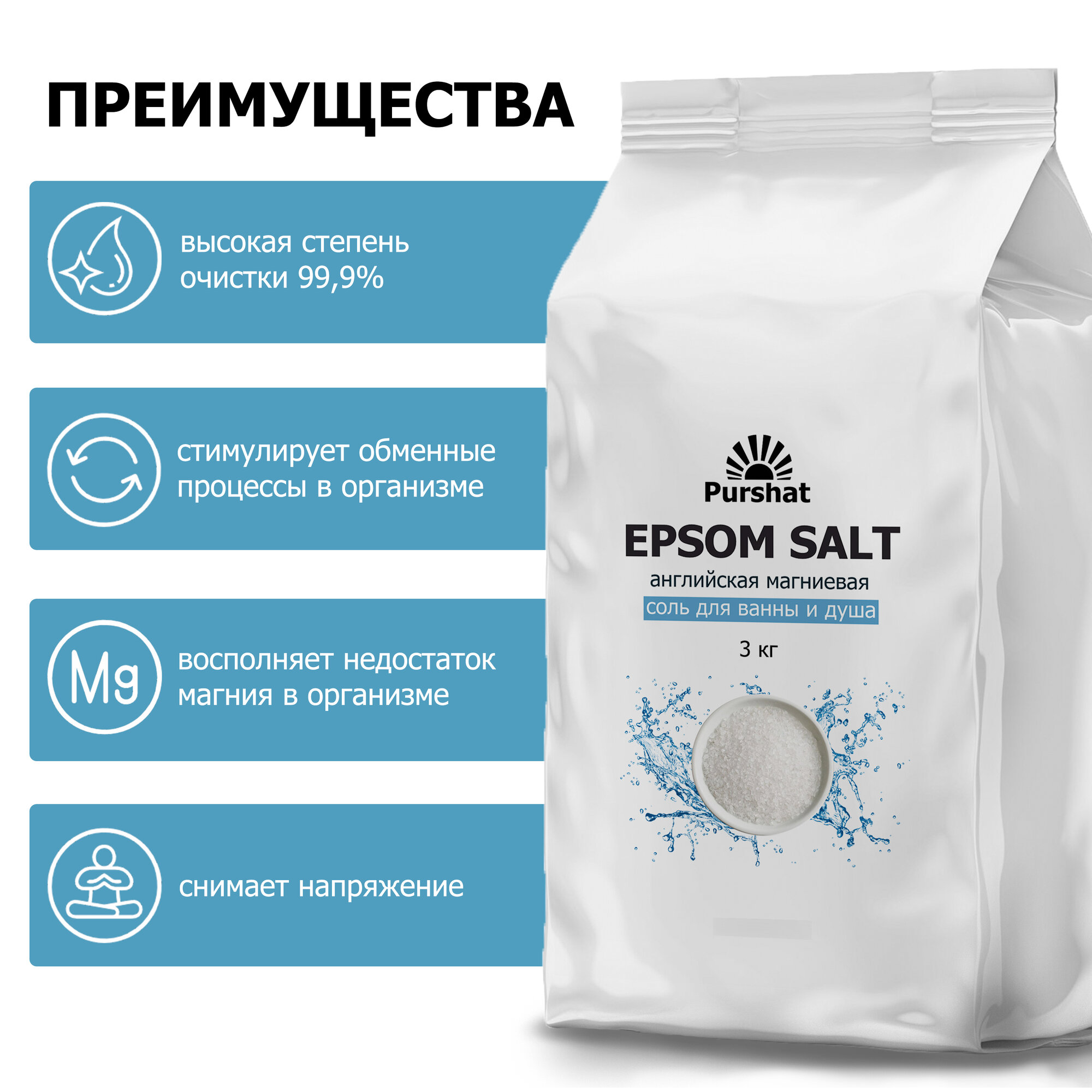 Купить Английская магниевая соль для ванны и душа Epsom Purshat 3 кг - натуральный SPA-комплекс для здоровья