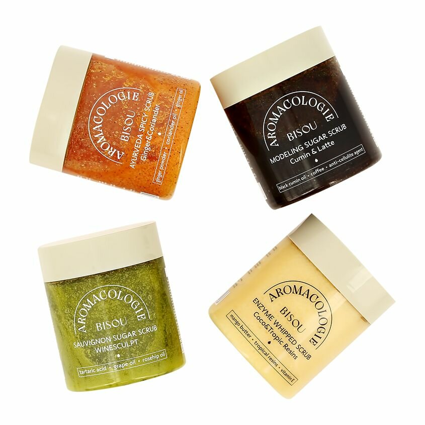 Скраб для тела BISOU "Aromacologie", Взбитый энзим, Кокос, Тропические смолы, 250 мл