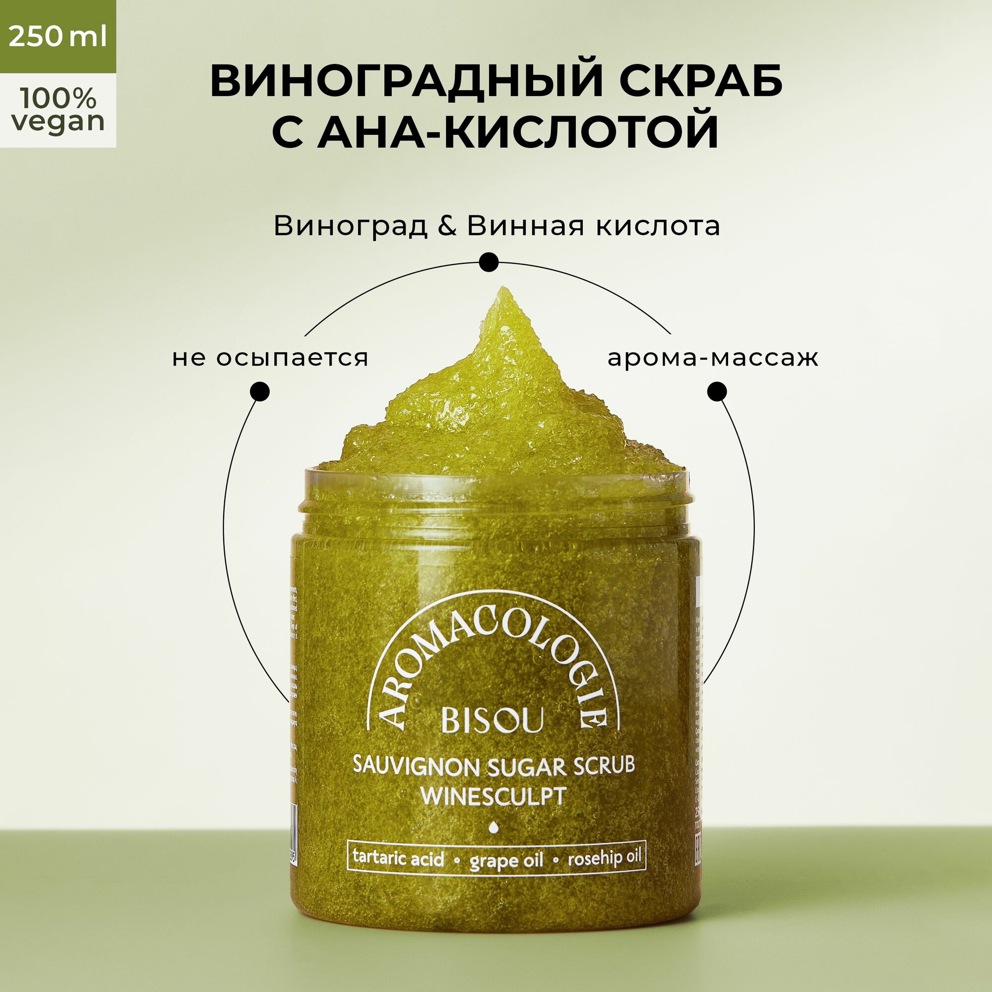 Купить Скраб для тела BISOU Aromacologie, Виноградный с винной кислотой, 250 мл