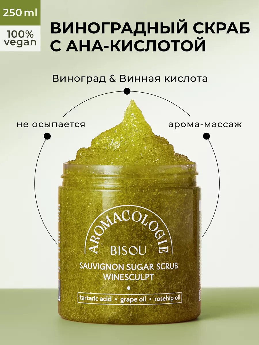 СохранитьСкраб для тела BISOU Aromacologie, Виноградный с винной кислотой, 250 мл интересное: