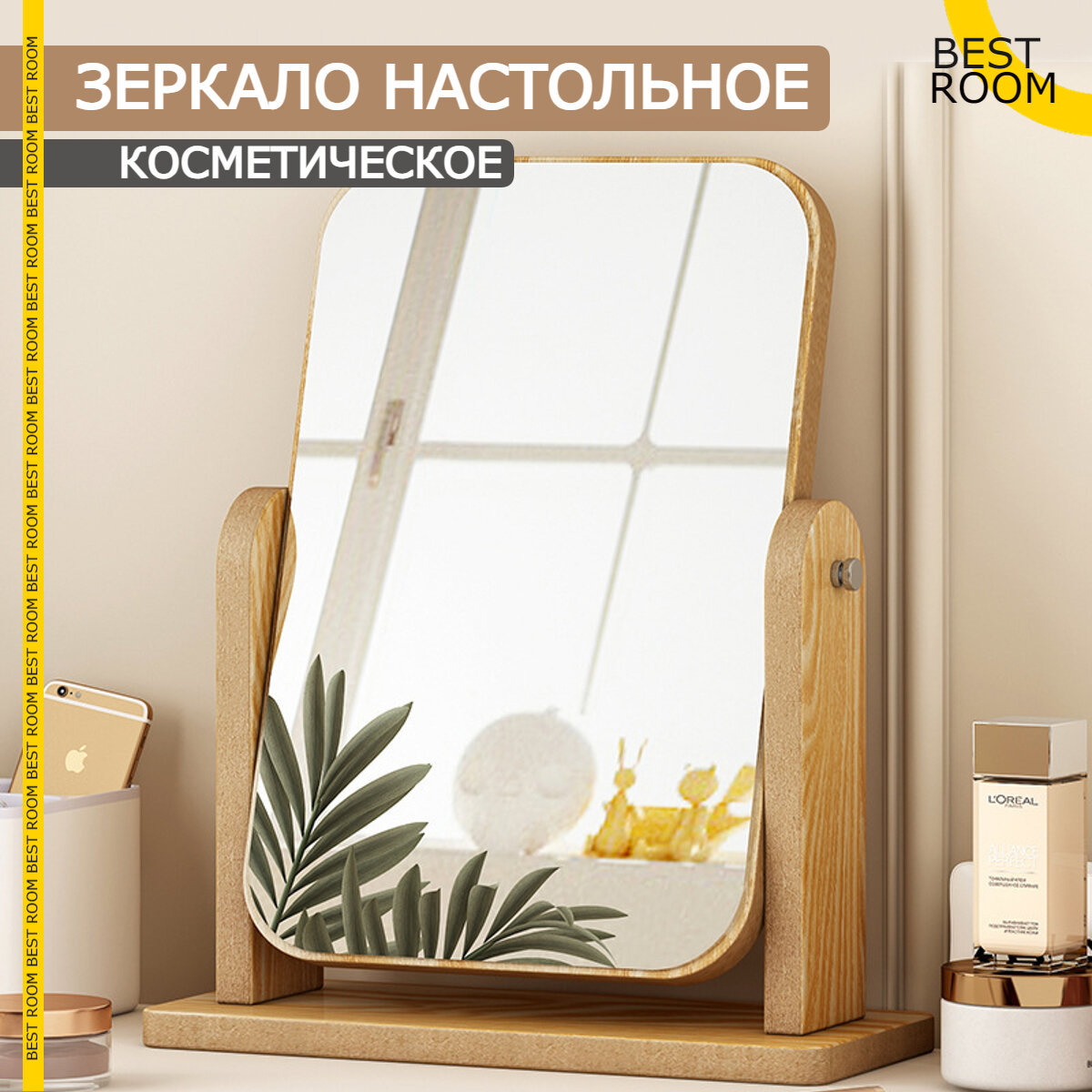 Зеркало Best Room для макияжа, настольное, дерево, бежевое интересное: