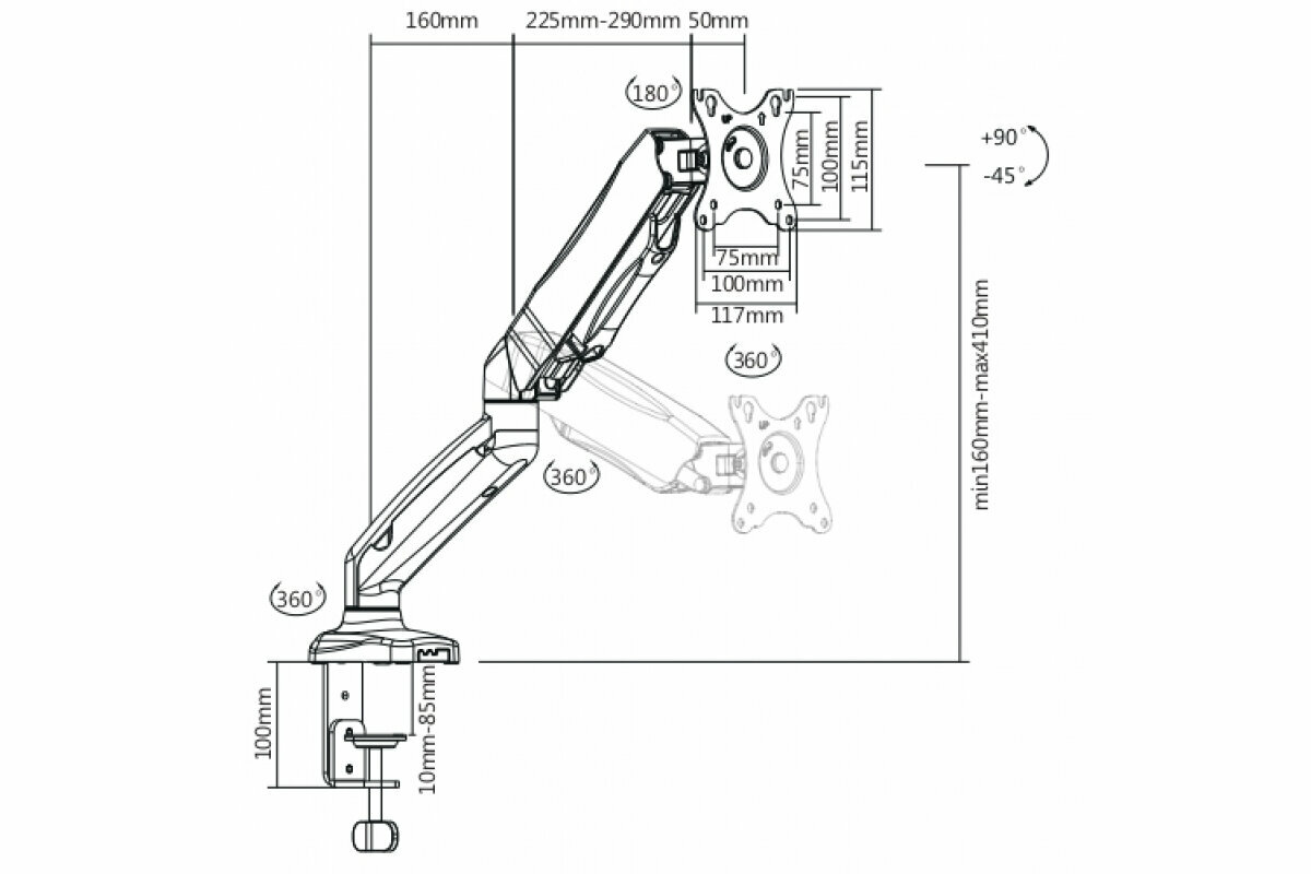 | Плюсы: | Отличное крепление, легко собирается, несколько степеней свободы, достаточное для удобного положения монитора. Доставили в срок. Кпаковка в идеальном состоянии, полный комплект. |