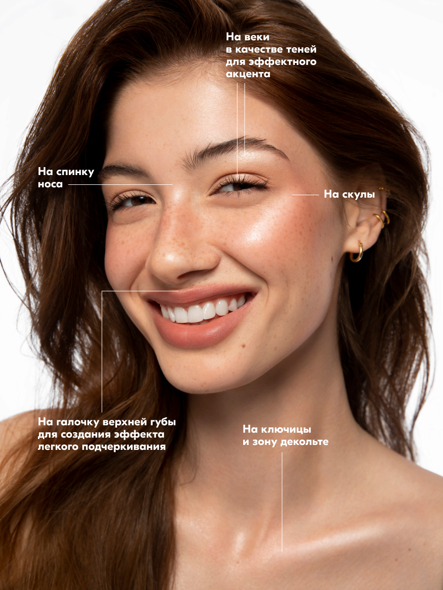 | Способ применения | после нанесения, используйте фиксатор макияжа с эффектом мерцания на все лицо. Блик станет еще более гладким, равномерным и стойким. |