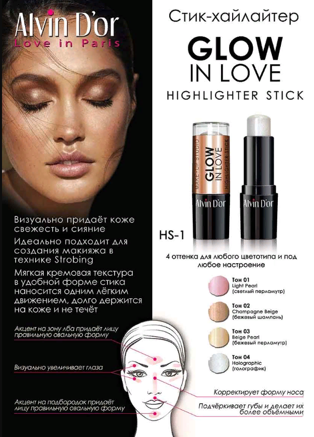 Alvin D'or, Стик-хайлайтер Glow In Love, light pearl