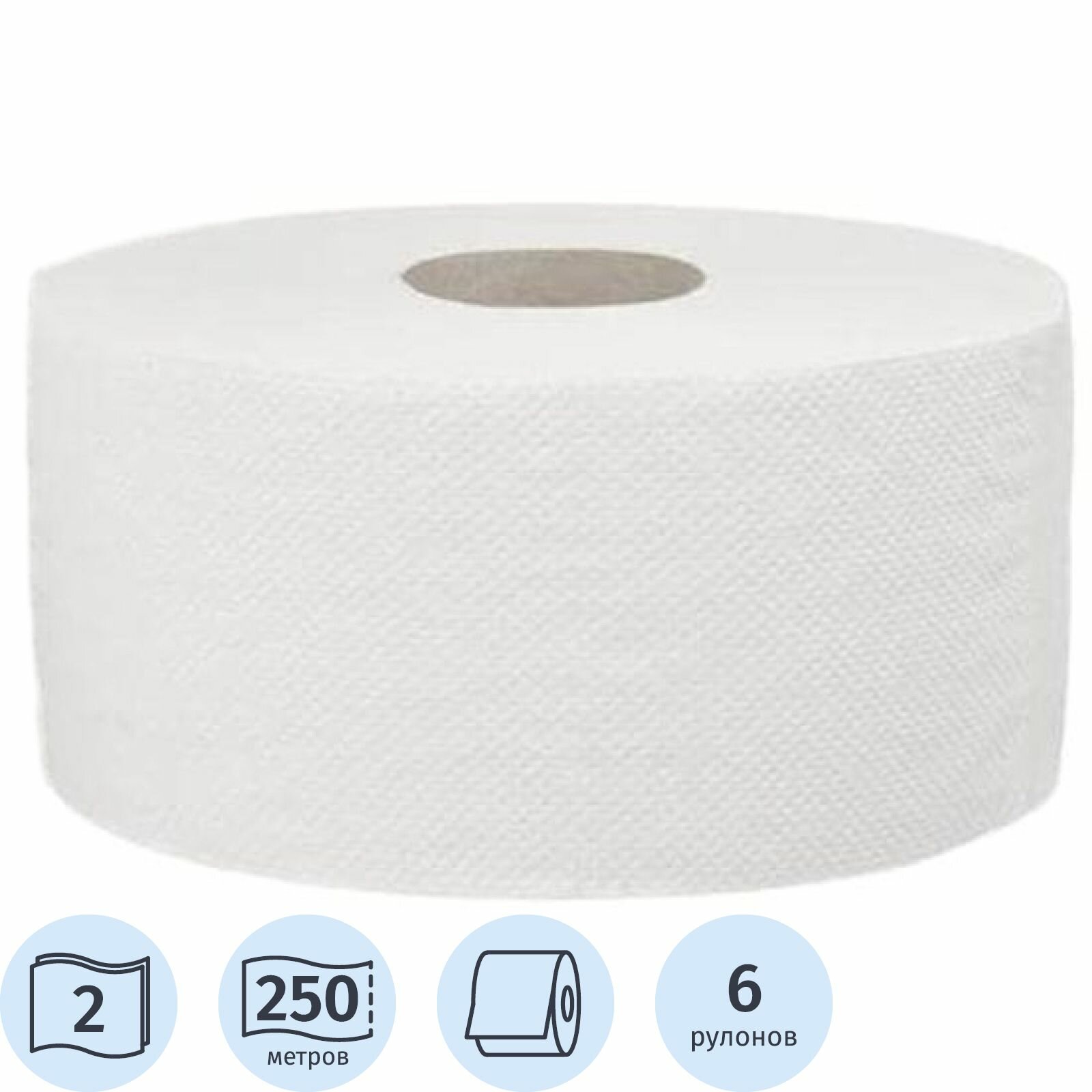 Туалетная бумага Luscan "Professional Etalon", для диспенсеров, 2 слоя, белая, первичная целлюлоза, втулка 250 м, 6 рулонов