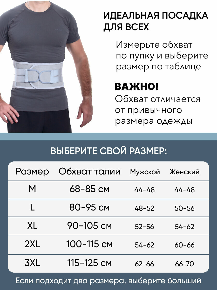 Корсет для спины ортопедический пояснично-крестцовый, корсетный пояс поддерживающий мужской женский: серый, р.2XL