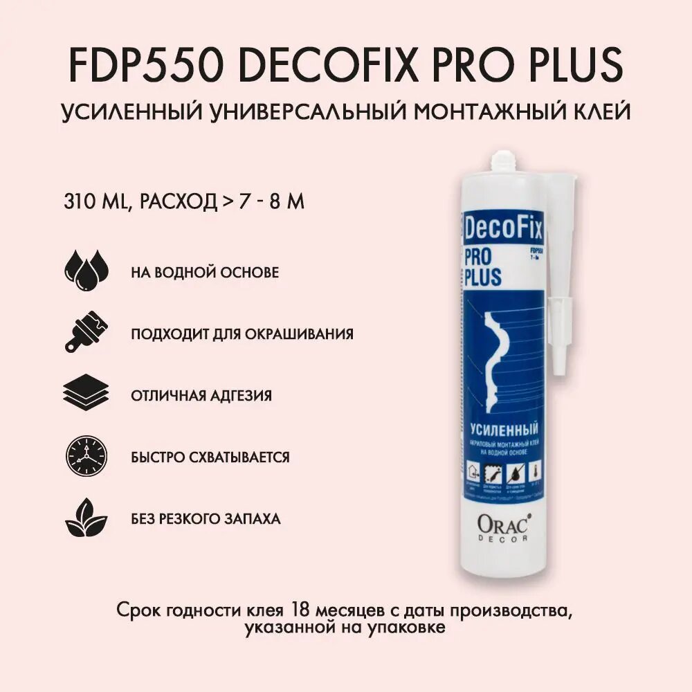 Клей Монтажный Orac Decor FDP550 Decofix Pro Plus 310мл Акриловый / Орак Декор. интересное:
