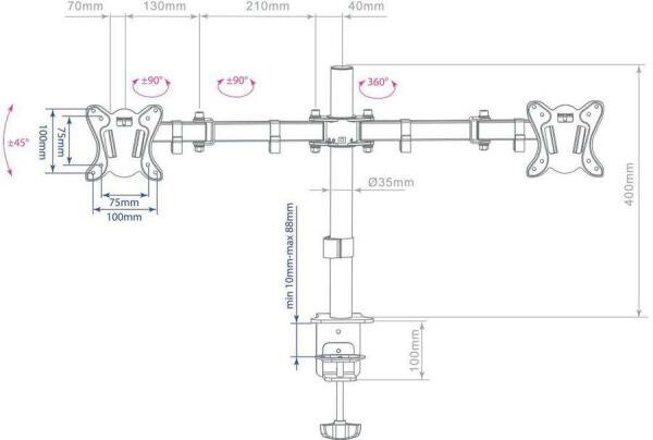 | Плюсы: | Прочная конструкция, два монитора, достаточно степеней свободы, щадящее крепление к столешнице без сверления отверстий и шурупов. Приемлемая цена. |