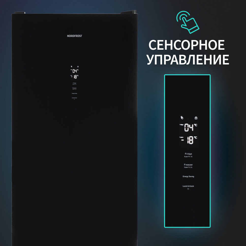 Купить Холодильник NORDFROST RFC 390D NFGB двухкамерный, 378 л объем, Total No Frost, фасад черное стекло