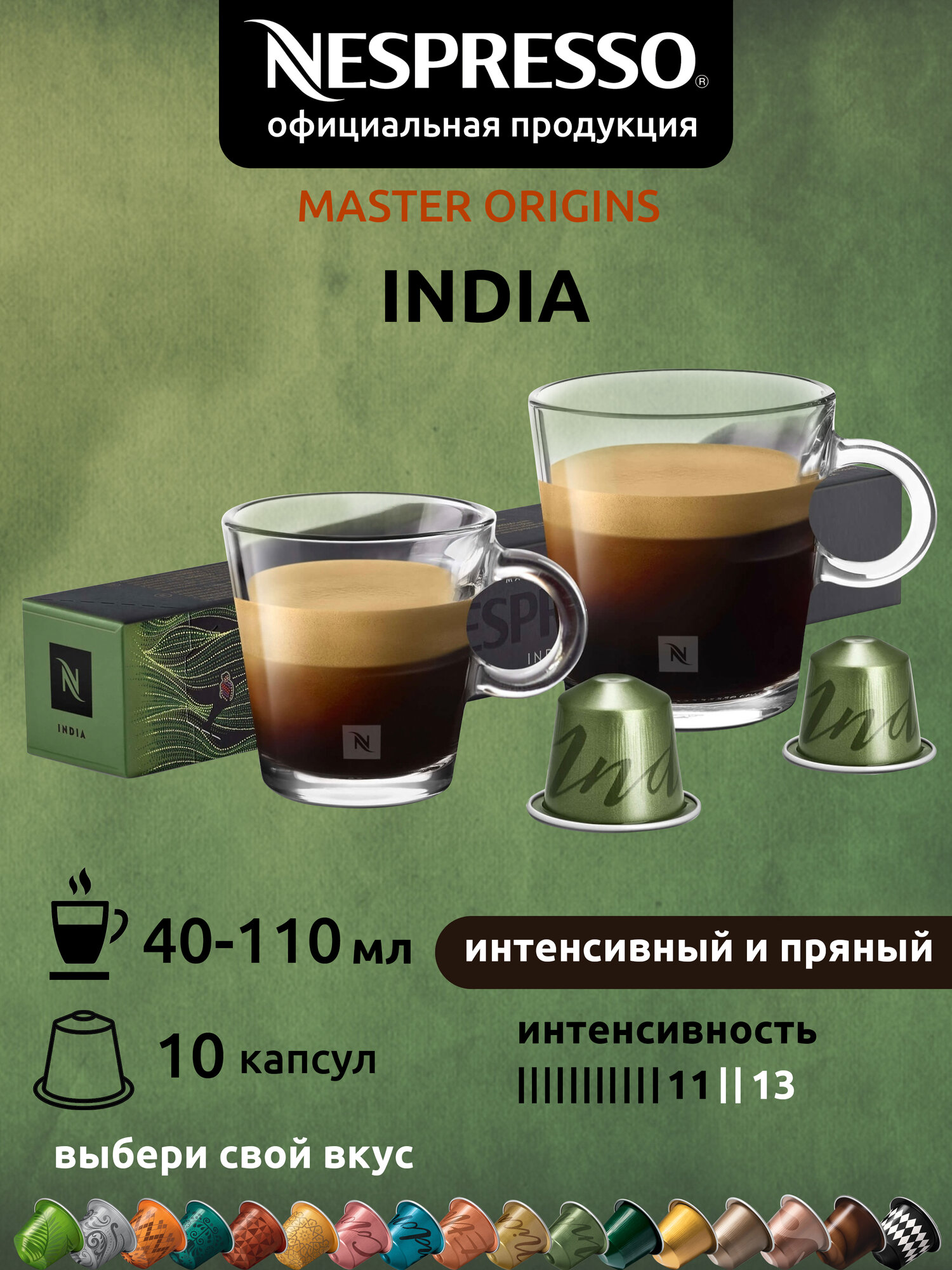 Купить Кофе в капсулах Nespresso ORIGINAL India, 10 кап., 40 и 110мл