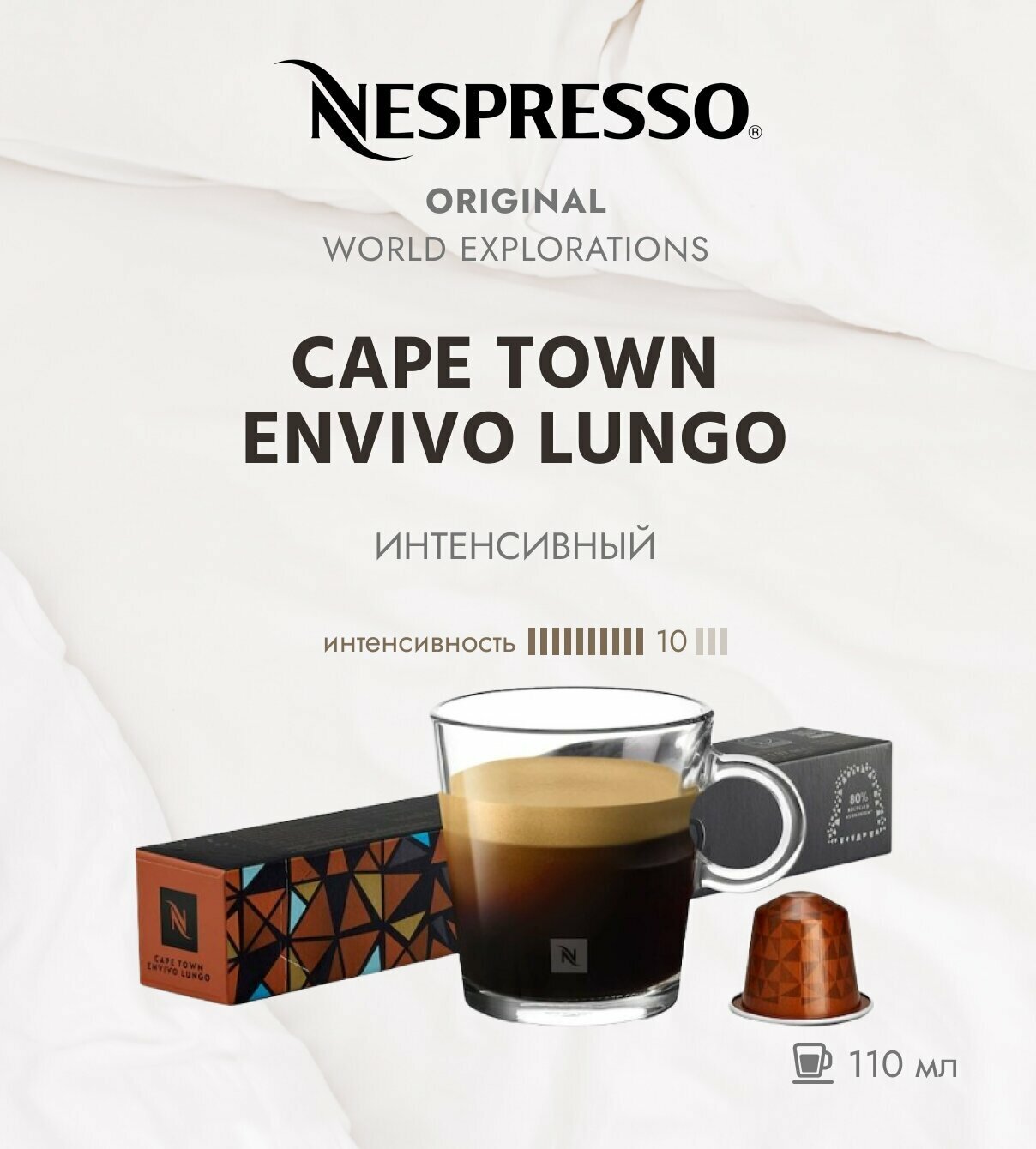 Оригинальные капсулы кофе Nespresso Cape Town (Кейп-таун, Envivo) Lungo, интенсивность 10, 1уп, 10 капсул