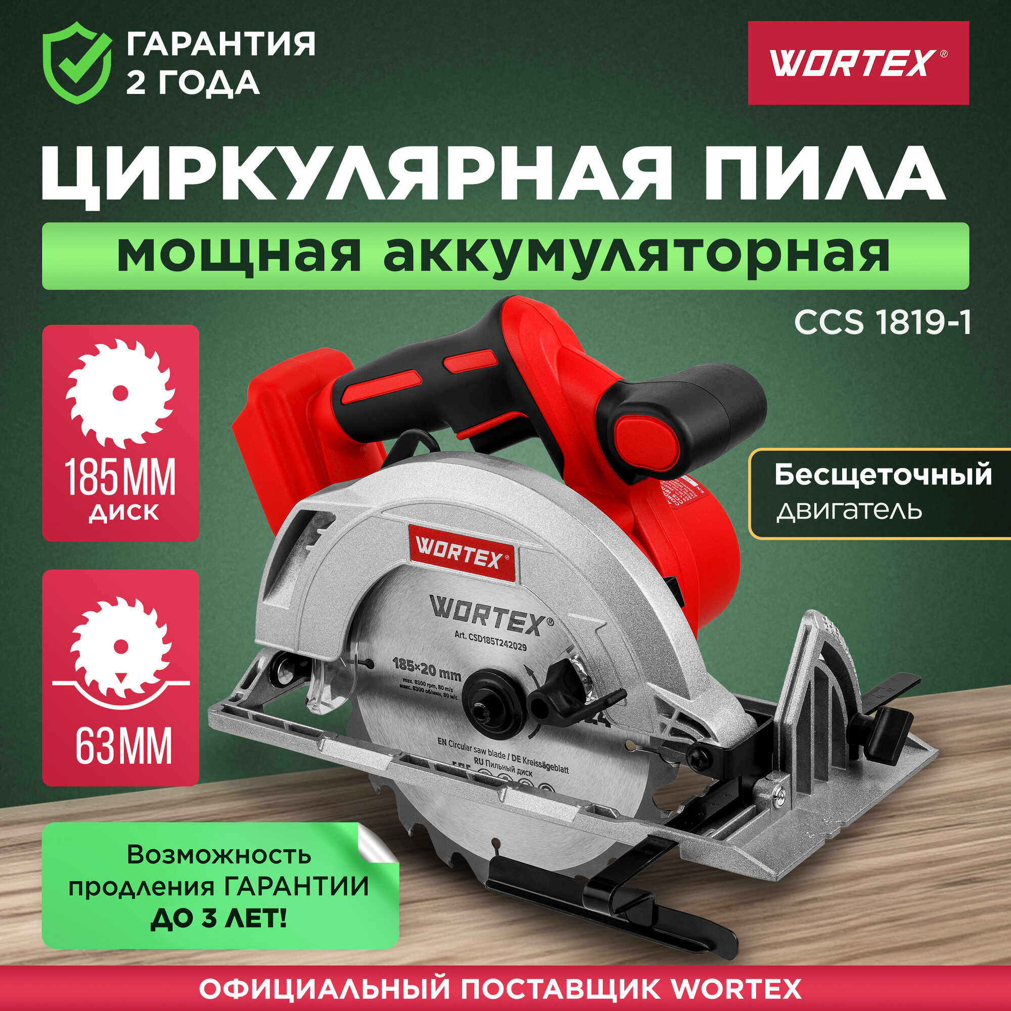 Дисковая (циркулярная) пила Wortex CCS 1819-1 1329532 (без АКБ)