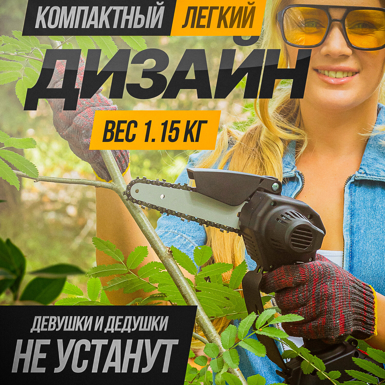 | Особенности конструкции | антивибрационная система, блокировка кнопки включения, мини-пила, регулировка натяжения цепи без инструмента |
