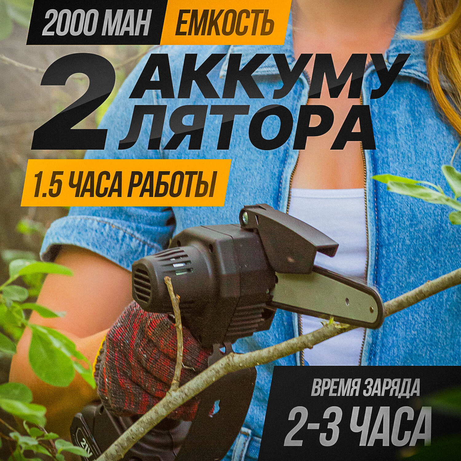 Цепная пила CraftCurrent, 2 аккумулятора, 2 цепи в комплекте, антивибрационная, 21В