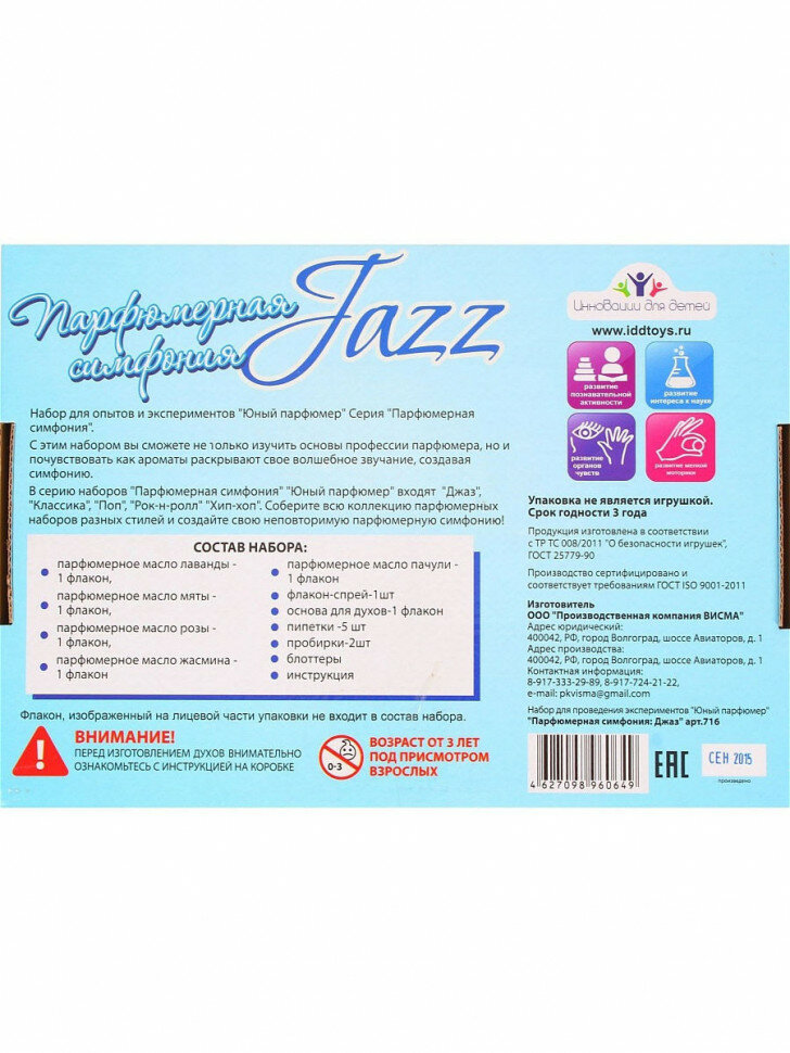 СохранитьНабор для опытов Юный парфюмер Парфюмерная симфония Джаз 716 интересное: