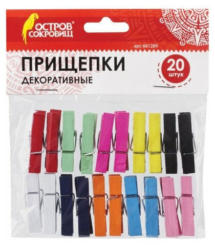 Материал декоративный Остров сокровищ Прищепки "Классика", 20шт., 3,5см, 10 цветов (661289), 20 уп. интересное: