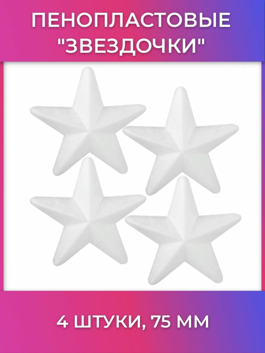 Пенопластовые заготовки для творчества "Звездочки", 4 шт, 75 мм, остров сокровищ, 661366 (цена за 1 ед. товара)