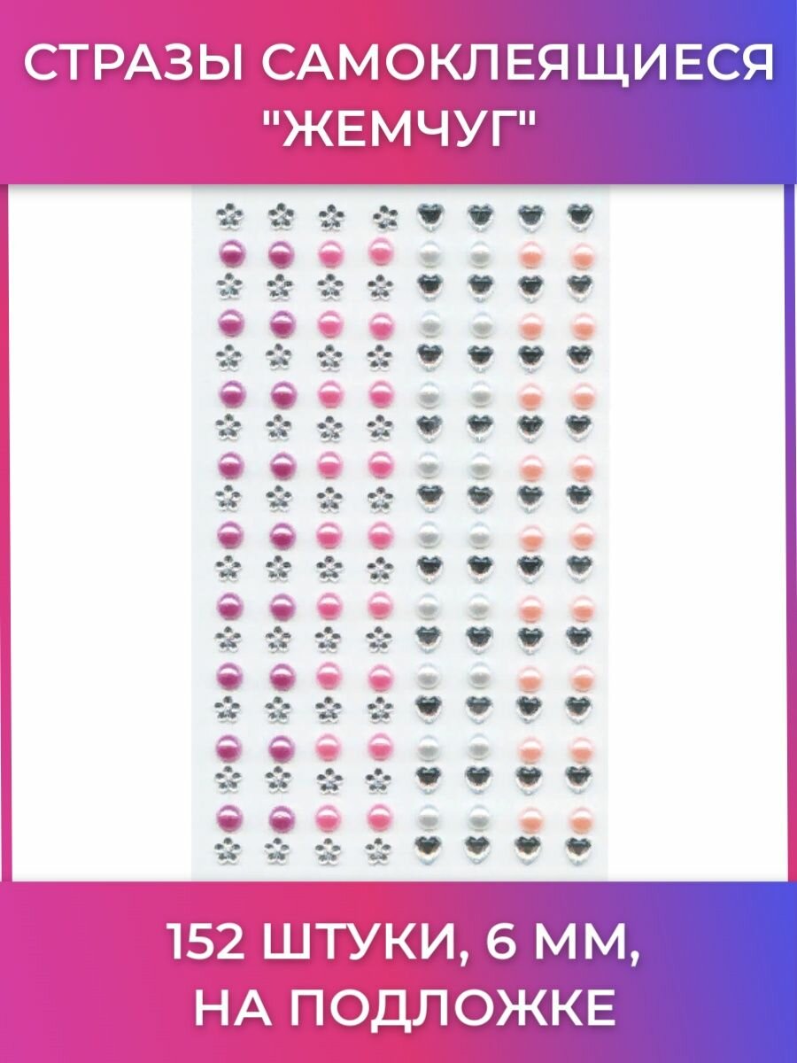 Стразы самоклеящиеся "Жемчуг", ассорти, 6 мм, 152 шт., на подложке, остров сокровищ, 661574 интересное: