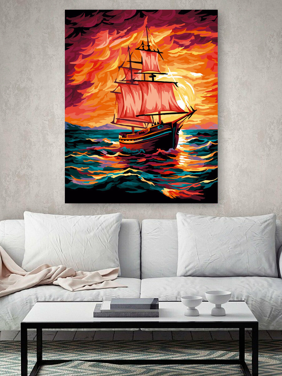 СохранитьКартина по номерам на холсте 40х50 см Парусник на закате интересное: