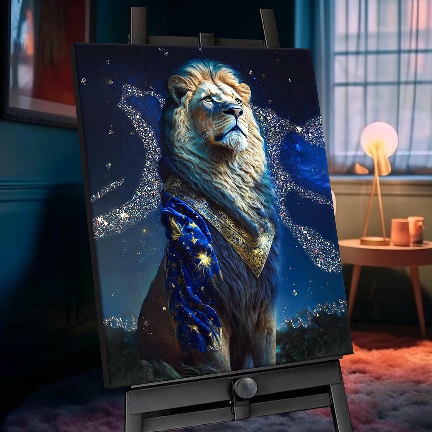 Картина по номерам с кристаллами Флюид на холсте с подрамником "Царь зверей" Раскраска 40x50 см, Животные Детская тематика Фэнтези