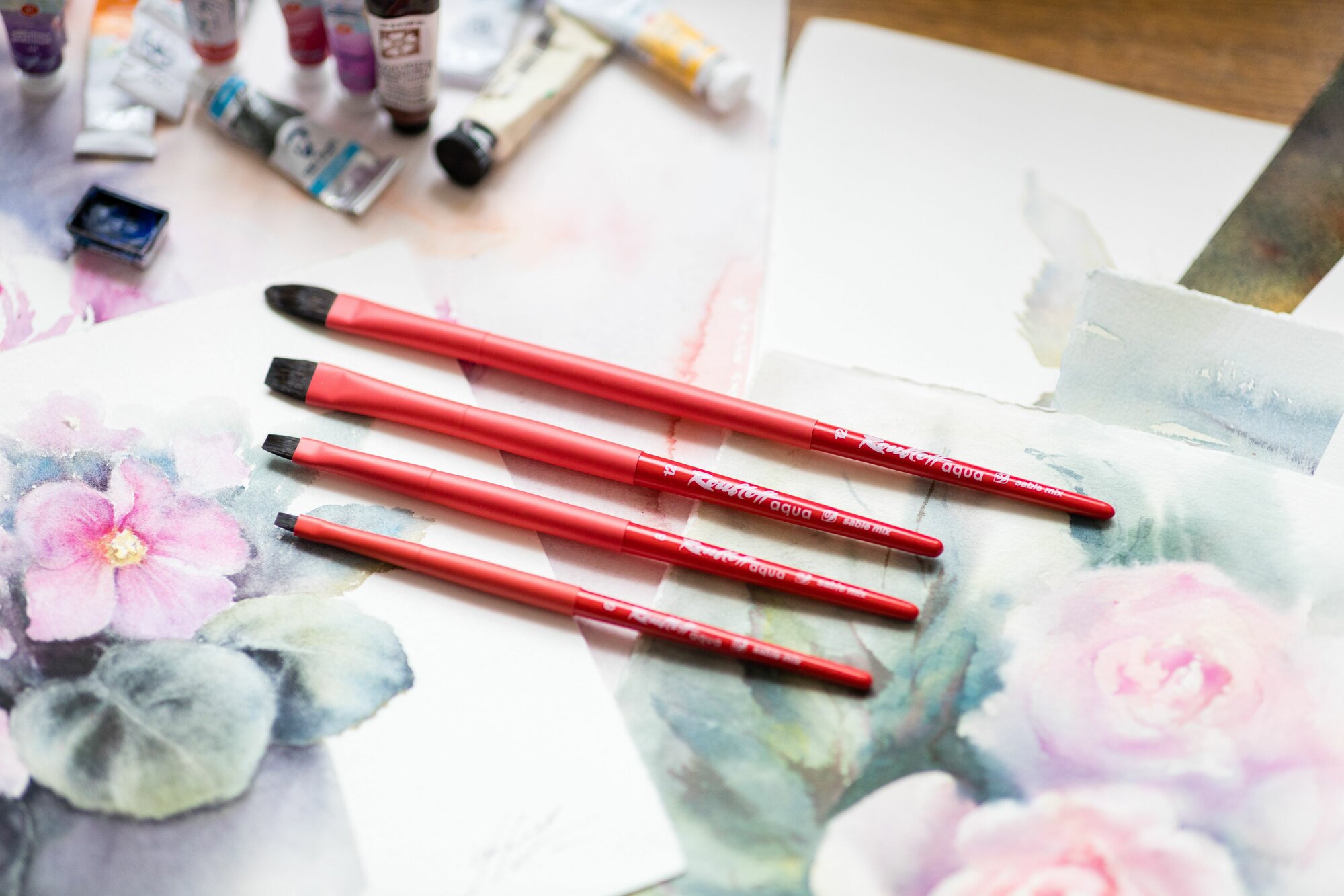 Roubloff Aqua Red flat кисть художественная соболь микс для акварели № 6 плоская, покрытие soft-touch
