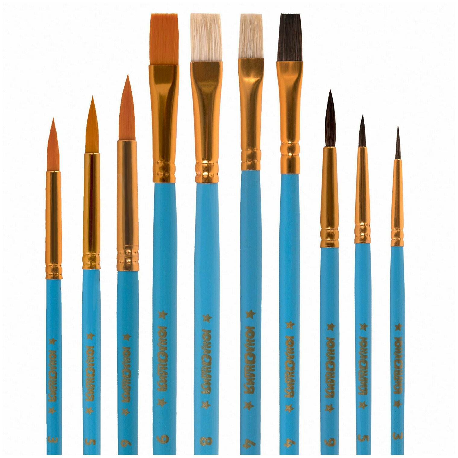 Кисти юнландия "юный волшебник", набор 10 шт. (пони - 5 шт, синтетика - 3 шт, щетина - 2 шт, круглые), 200896
