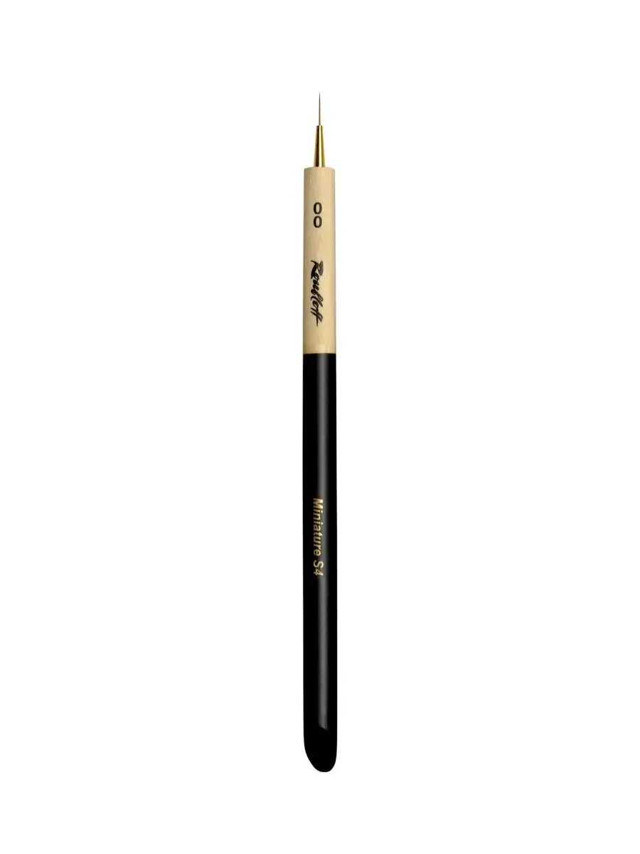 Купить Кисть Roubloff Миниатюра, синтетика имитация колонка, лайнер 00, ручка скошенная утолщенная с черным матовым кончиком, желтая обойма