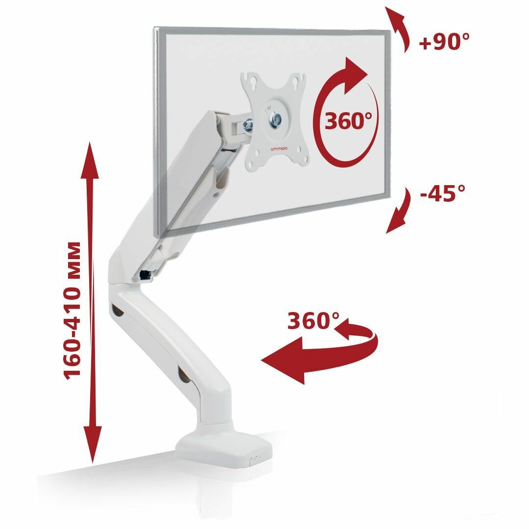 Кронштейн ARM Media LCD-T21 Vesa до 100x100 15-32' max 7кг white для одного монитора с газовой пружи .