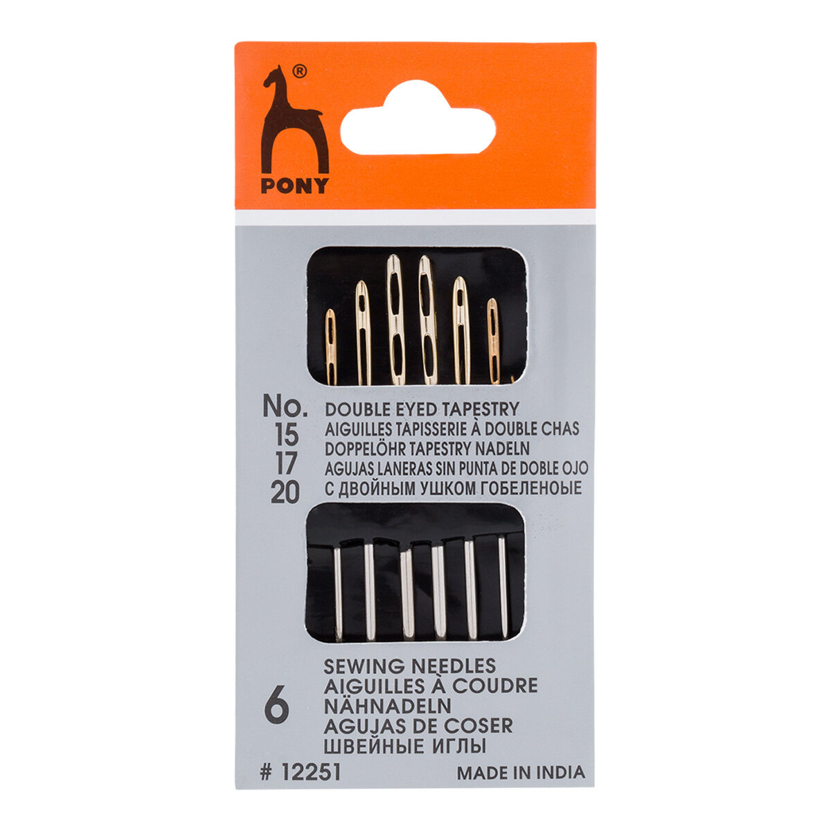 Купить Иглы для вышивания гобеленовые № 15, 17, 20, ручные, с двойным ушком, PONY Tapestry Double Eyed, 12251, 6 шт