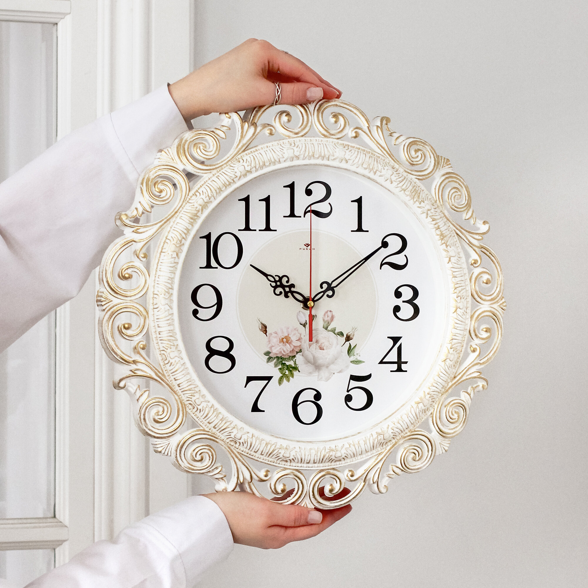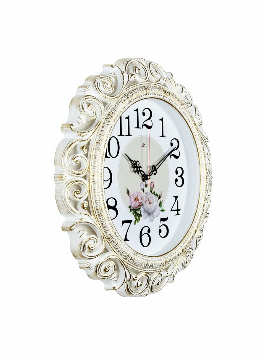 Купить Часы настенные кварцевые Рубин Нежные пионы 4126-003, белый с золотом