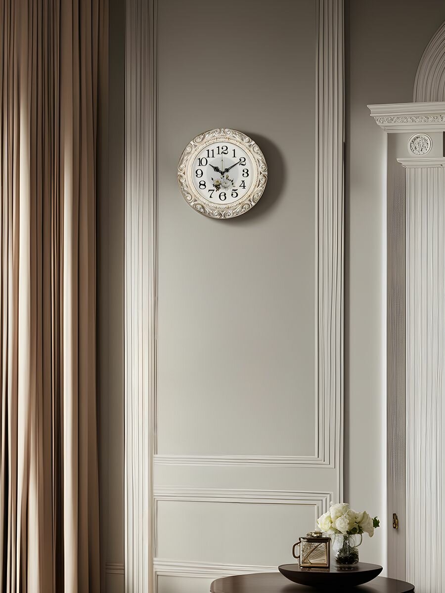 Часы настенные бесшумные на батарейках, ажурные часы плавный ход диаметр 40 см, Белый + Серебро/ часы белые винтаж