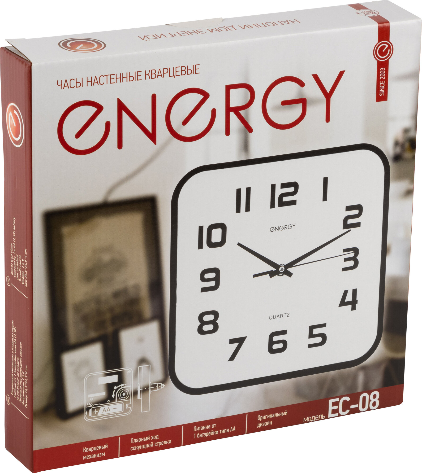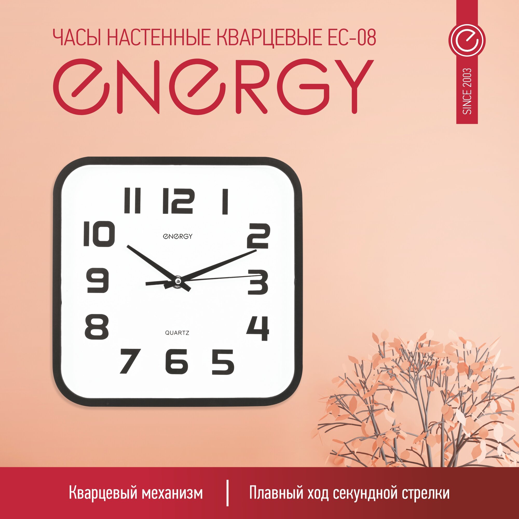 ENERGY Часы настенные кварцевые модель ЕС-08 квадратные 009308