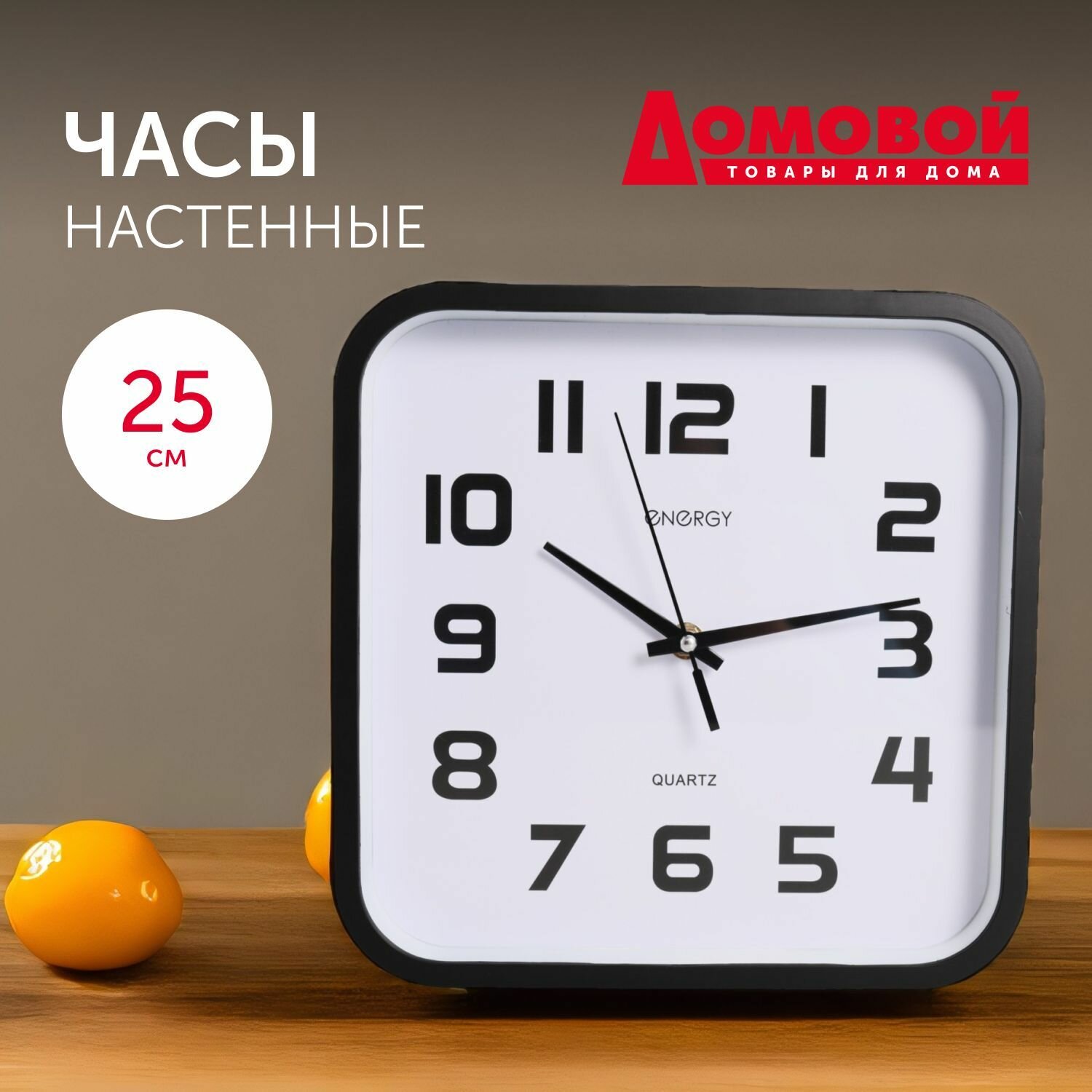 СохранитьЧасы настенные бесшумные, кухонные, для декора и интерьера на батарейке, квадратные, кварцевые, Домовой, 25 см интересное: