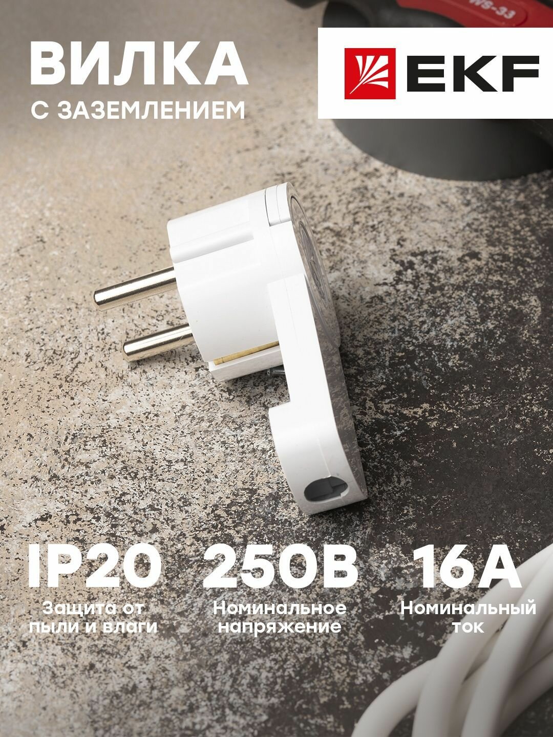 EKF вилка-невидимка стелс (угловая, плоская, земля, белая) 16А 250В PRO AVYF16-10-r
