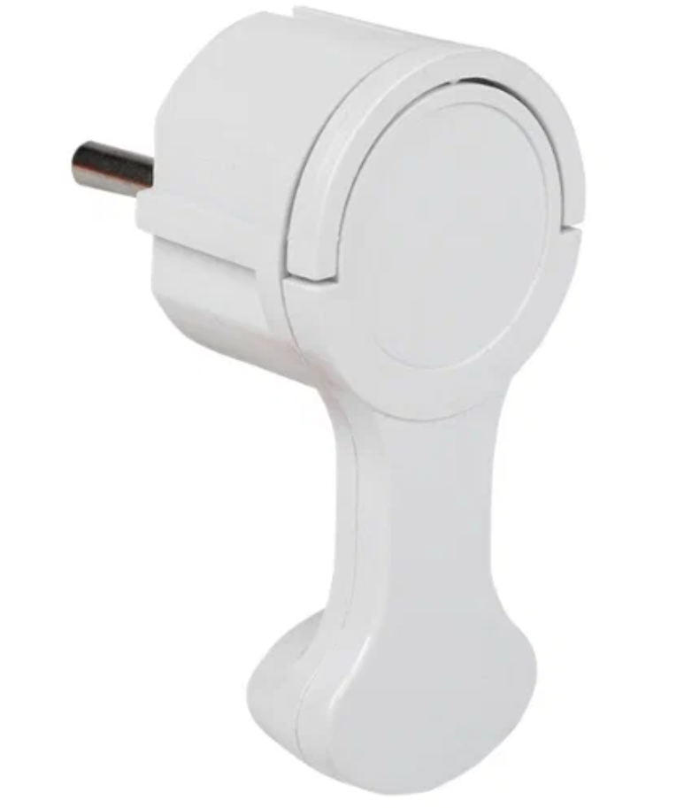 Вилка угловая плоская, с заземлением, стелс (16А, 250В), белая интересное: