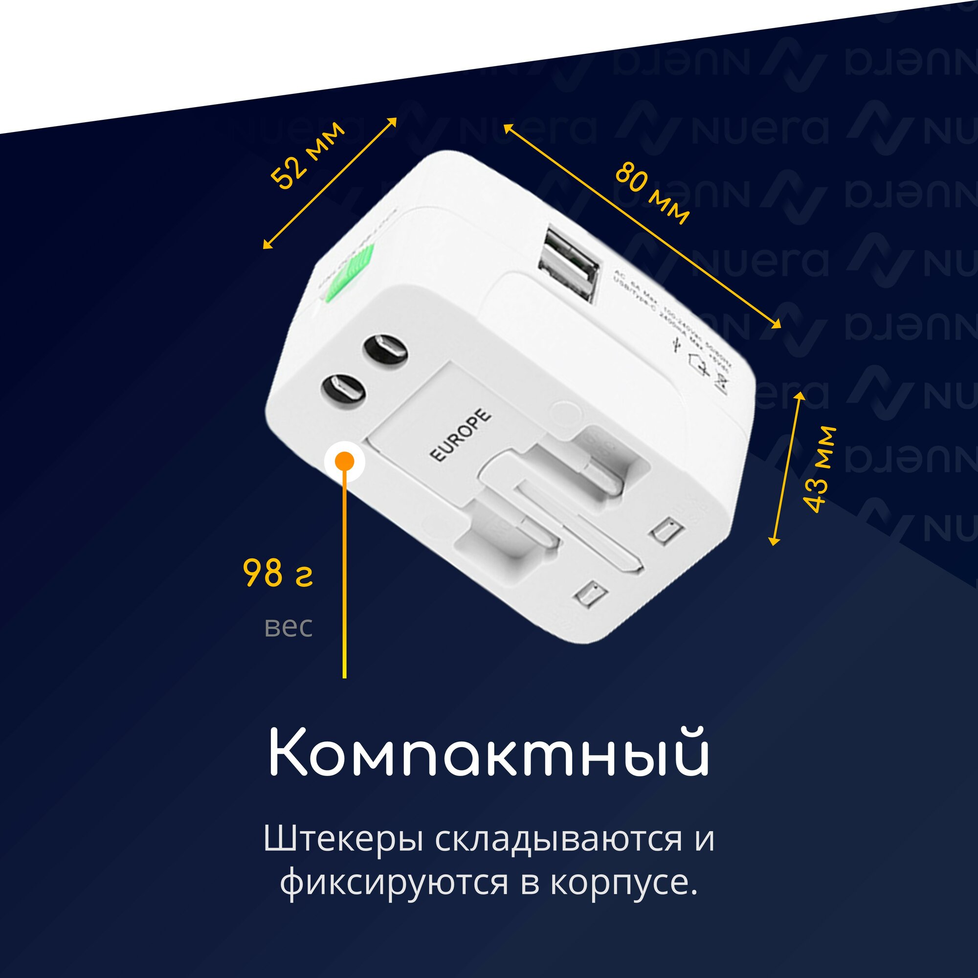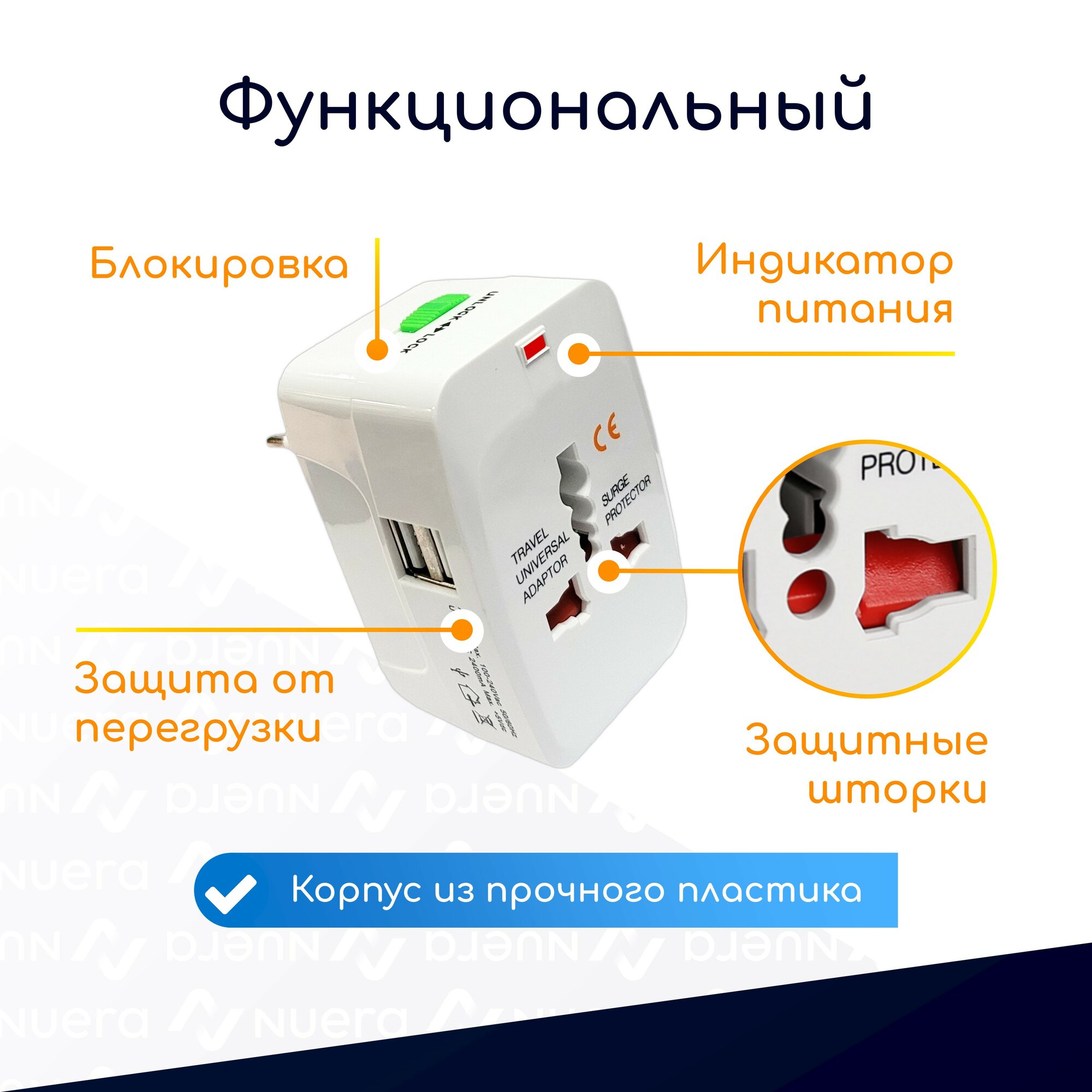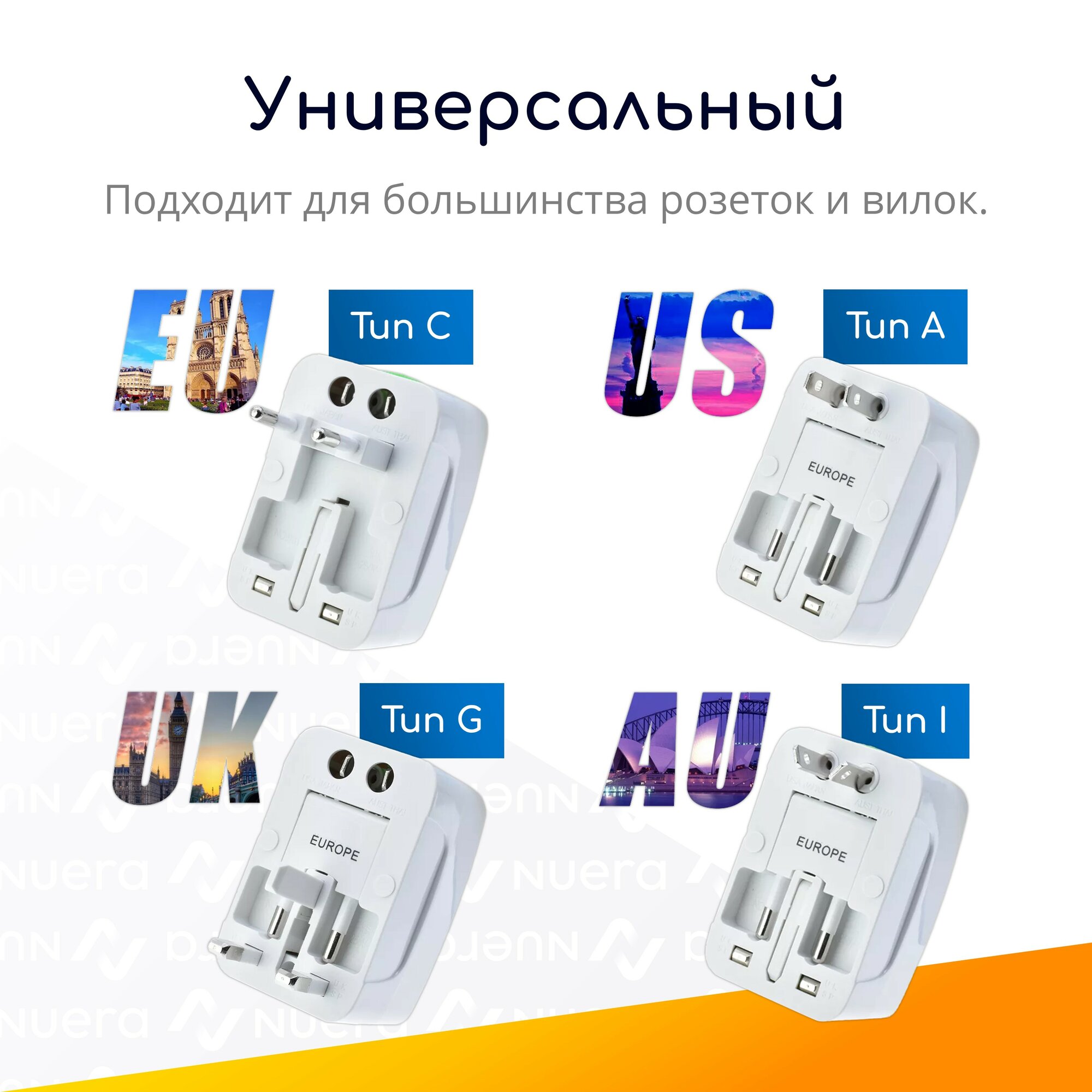 Универсальный туристический сетевой адаптер трансформер под все виды розеток с 2 USB портами и чехлом / NOBUS TA931DW интересное: