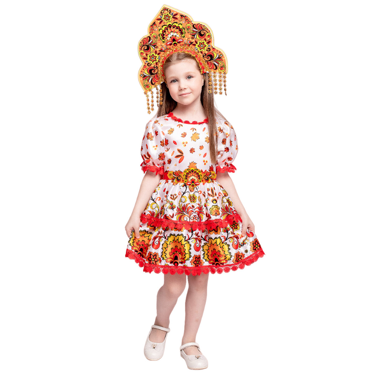 Карнавальный костюм детский "Волшебница осень" с кокошником для девочки
