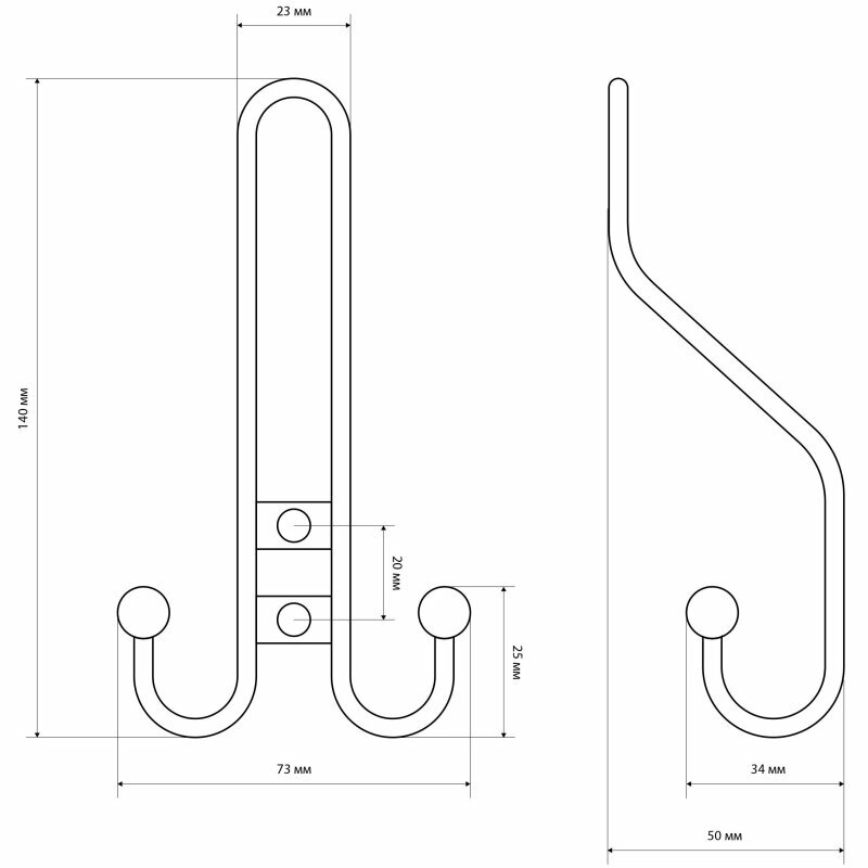 Крючок-вешалка 2-рожковый, Стандарт, 208 A BL, 14 620, матовый черный