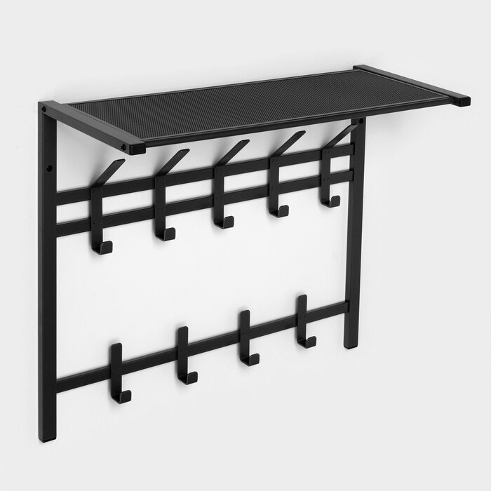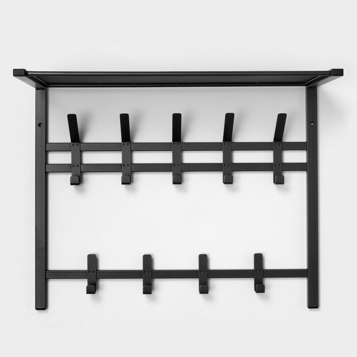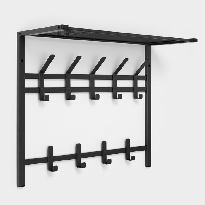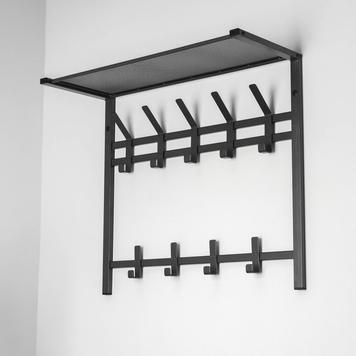Купить Вешалка настенная в прихожую «Торонто 22», с полкой, металл, 67×27×58.5 см, графит