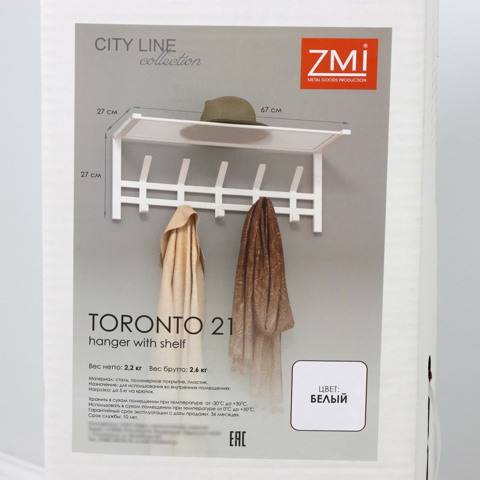 Купить Вешалка с полкой «Торонто 21», 67×27×27 см, 5 двойных крючков, белая