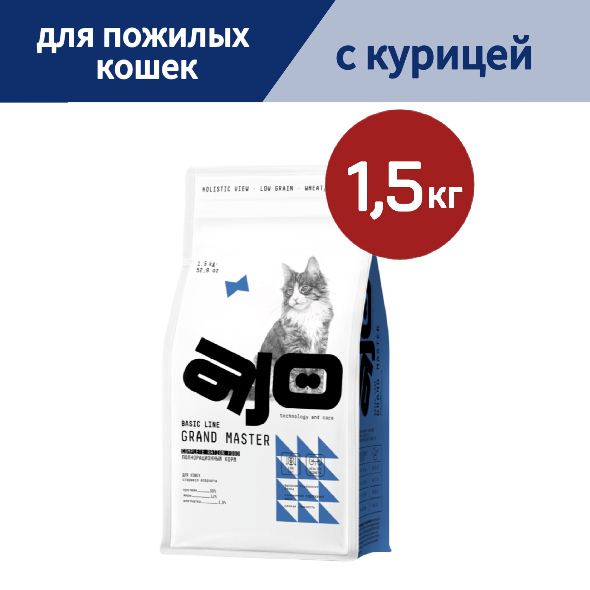 Купить AJO Grand Master сухой полнорационный корм для кошек старшего возраста с курицей 1,5 кг