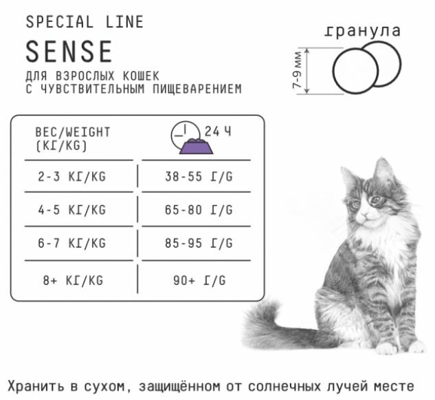 | Особые потребности | беззерновой / гипоаллергенный / для беременных / кормящих кошек / для вывода шерсти / для живущих в помещении / для живущих на улице / для здоровья кожи и блеска шерсти / для здоровья костей и суставов / для профилактики стресса / для снижения запаха стула / для стерилизованных/кастрированных / при диабете / при чувствительном пищеварении / профилактика МКБ / профилактика зубного камня / профилактика избыточного веса |