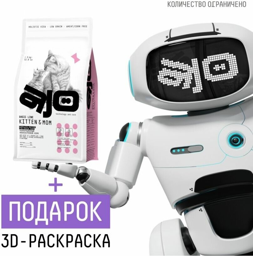 AJO Cat Kitten & Mom Сухой полнорационный корм для котят, беременных и кормящих кошек 1,5 кг