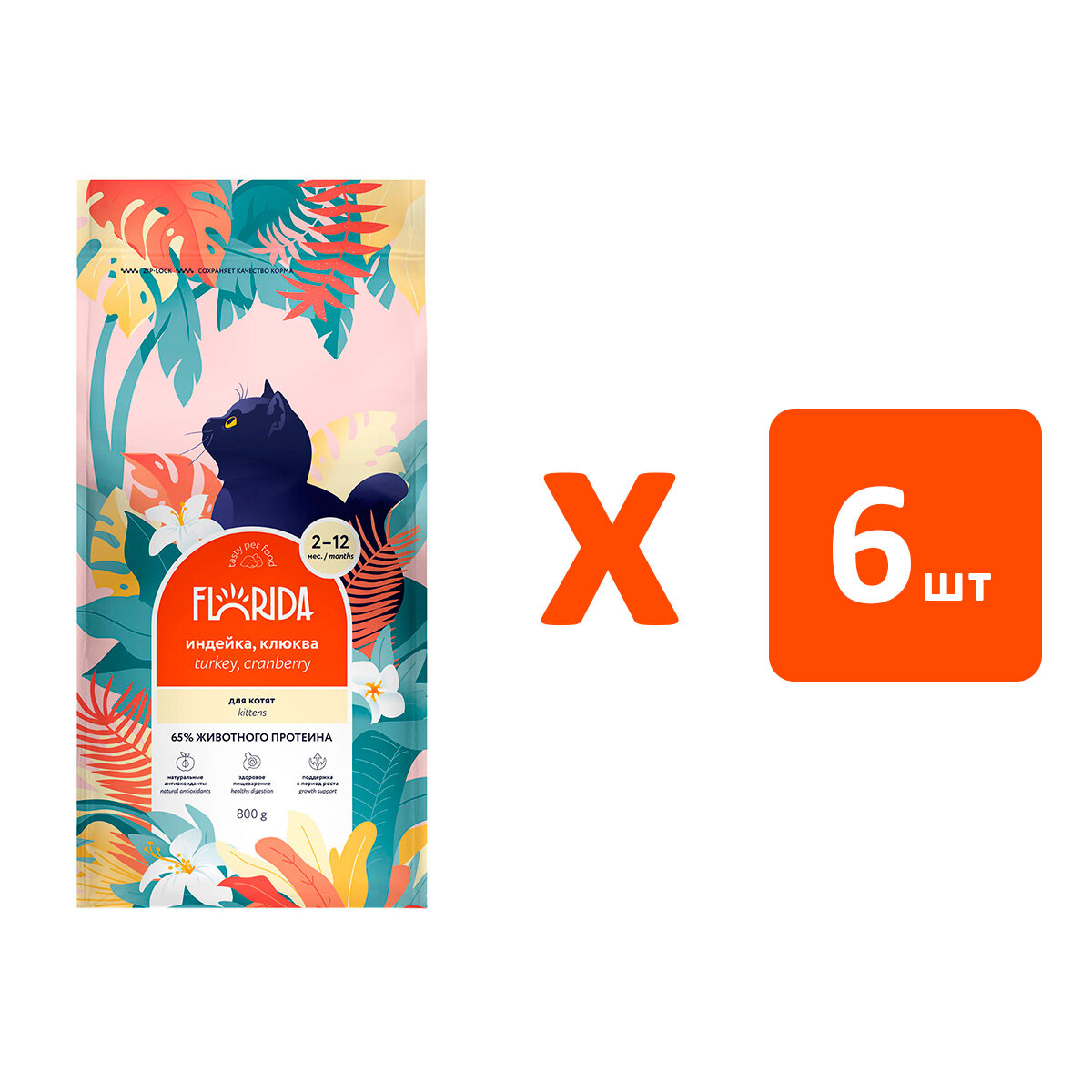 Купить FLORIDA для котят с индейкой и клюквой (0,8 кг х 6 шт)