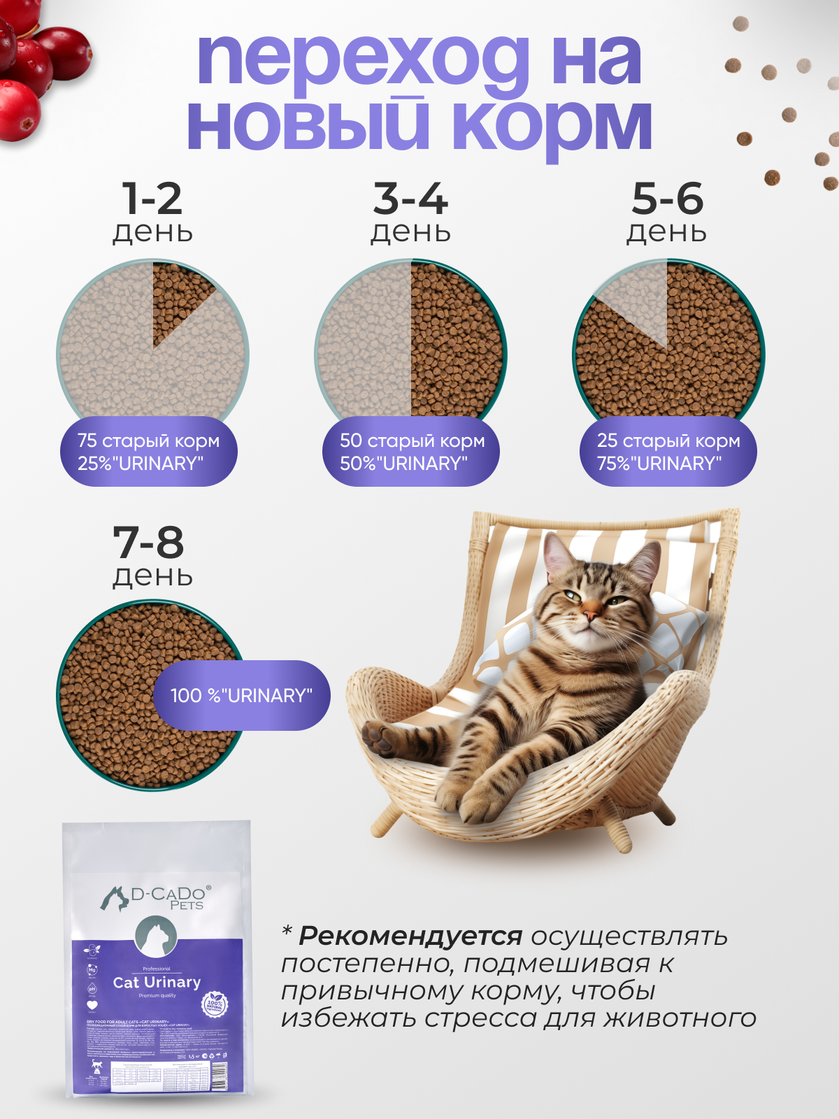 Сухой корм D-CaDo Urinary Cat, для взрослых и пожилых кошек, премиум, 10 кг