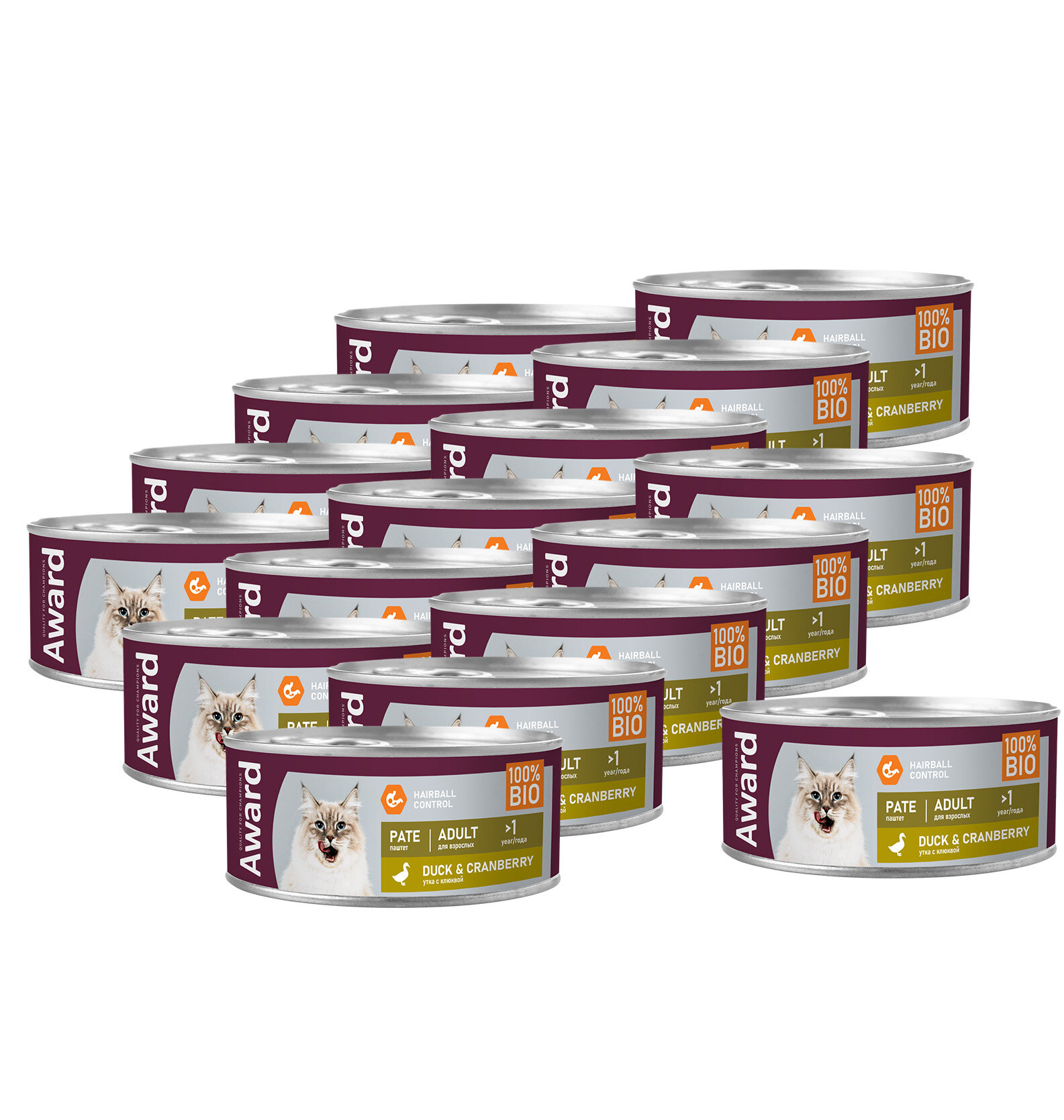 Влажный корм AWARD для кошек паштет из утки с клюквой 100г * 16 шт