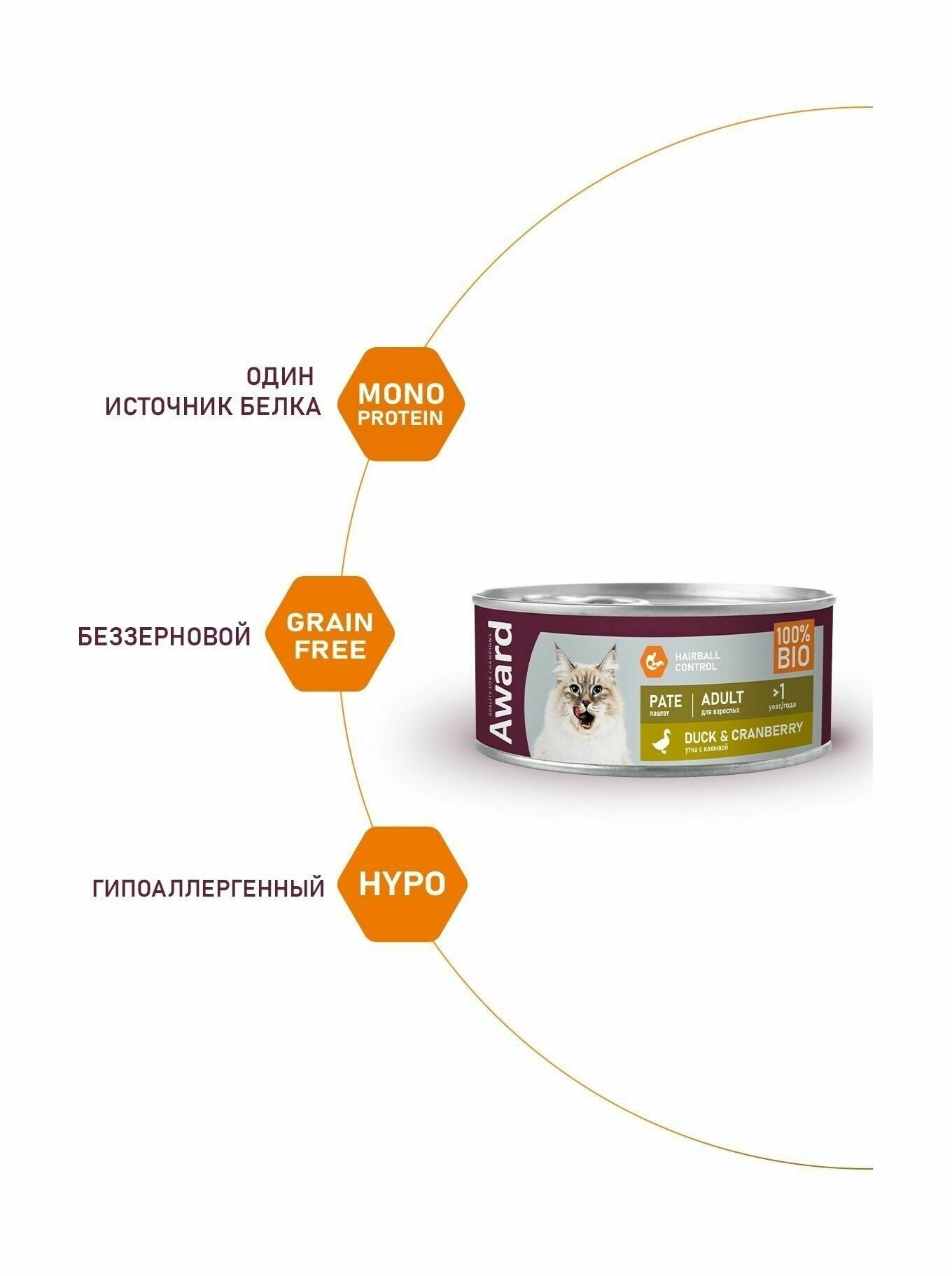 Купить AWARD Влажный корм для взрослых кошек паштет из утки с клюквой 100гр х 16 шт