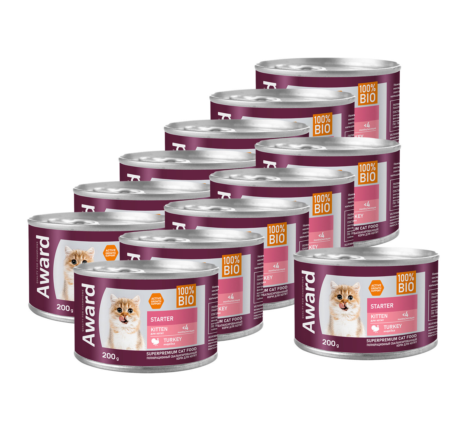 Влажный корм AWARD для котят с начала прикорма до 4 месяцев, беременных и кормящих кошек паштет из индейки (12шт х 200г)